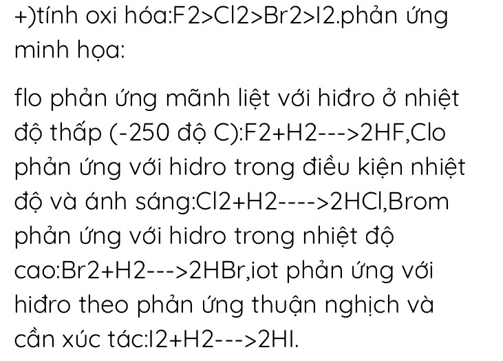 So sánh tính chất oxi hóa của các đơn chất f2 cl2 br2 i2 dẫn ra những phương trình hóa học để Minh