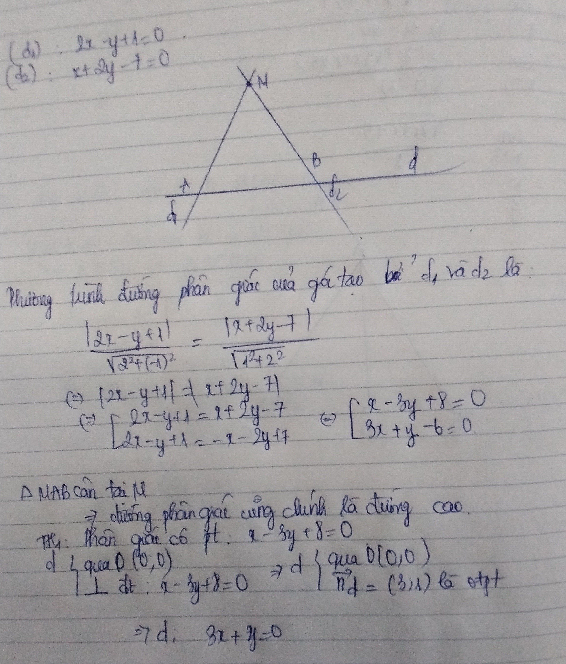 Ta giả sử tam giác AMN cân tại A và gọi đường thẳng d cần tìm có phương trình y = ax