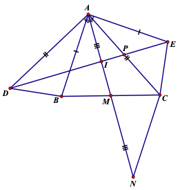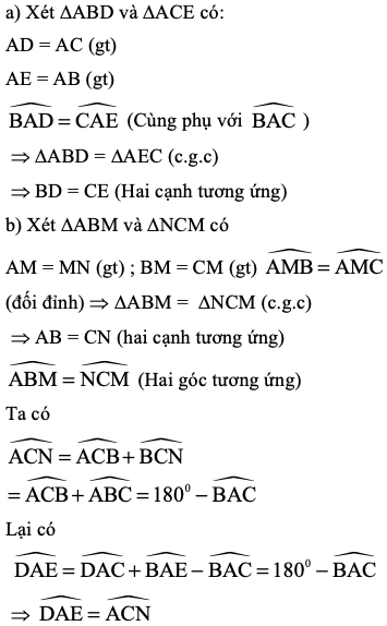 Cho ABC có ba góc nhọn, trung tuyến AM. Trên nửa mặt phẳng bờ AB chứa điểm C, vẽ đoạn thẳng AE vuông góc và bằng AB. Trên nửa mặt phẳng bờ AC chứa điểm B, vẽ đoạn thẳng AD vuông góc và bằng AC.