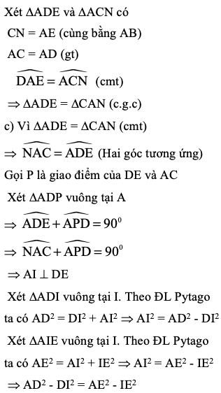 c/ Gọi I là giao điểm của DE và AM. Chứng minh: