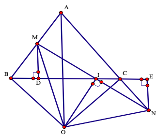 3. Gọi O là giao của đường phân giác góc A và đường thẳng vuông góc với MN tại I.