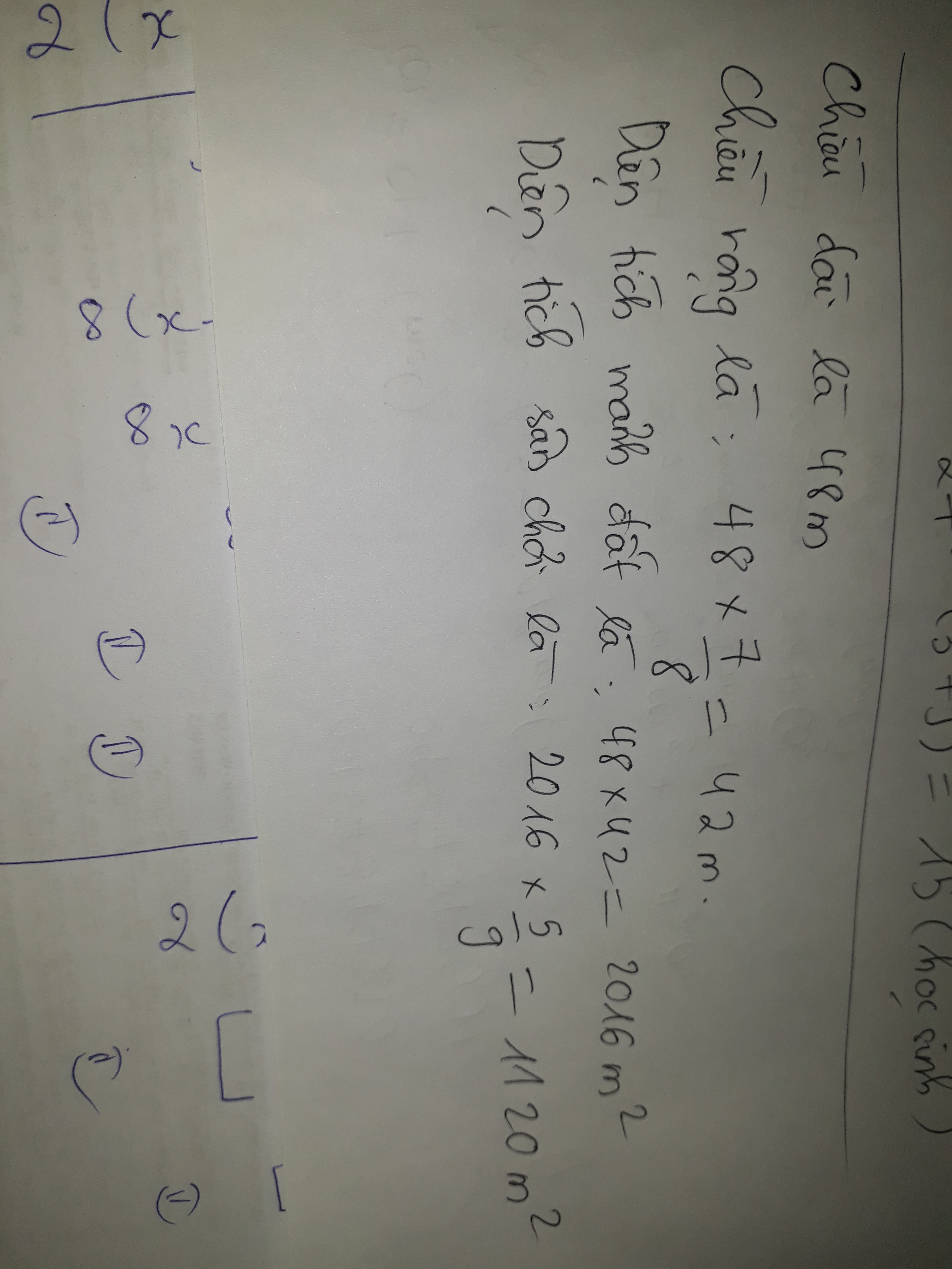 Diện tích sân chơi là: 5/9x2016=1120 m2