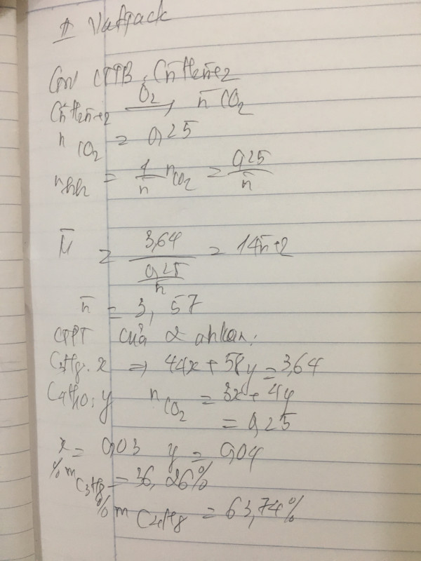 Đốt cháy hoàn toàn 3,64 gam hỗn hợp 2 ankan đồng đẳng kế tiếp thu được 5,6 lít co2 (dktc)