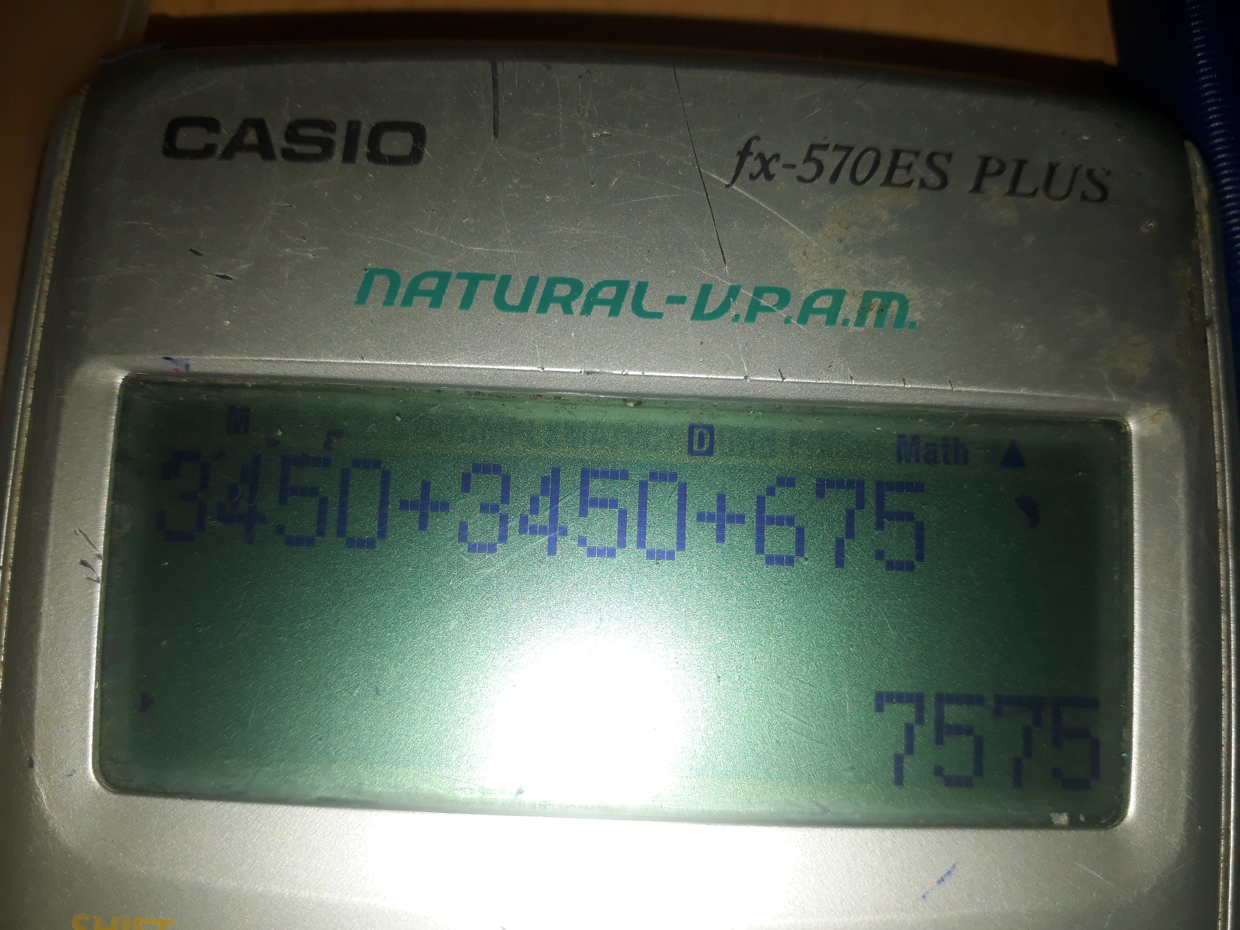 Tổng số thóc thu hoạch được ở 2 thửa: 4125+3450=7575 kg