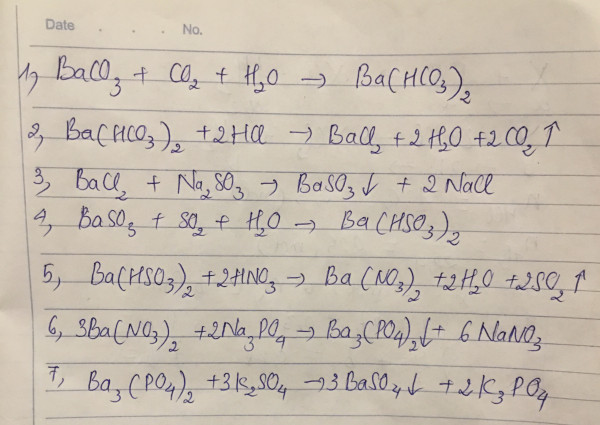 BaCO3 Ba(HCO3)2 BaCl2 BaSO3 Ba(HSO3)2 Ba(NO3)2 Ba3(PO4)2 BaSO4