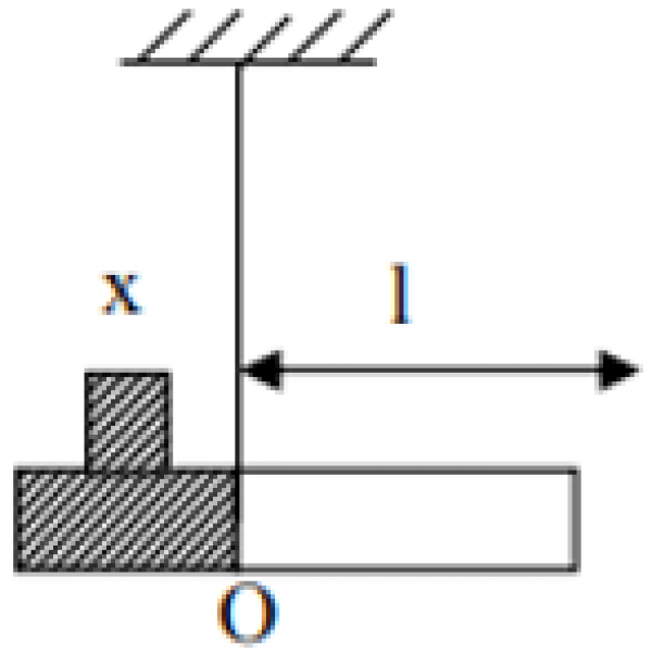 Hai bản kim loại đồng chất tiết diện đều có cùng chiều dài = 20 cm và cùng tiết diện nhưng có trọng lượng riêng khác nhau d1 = 1,25d2. Hai bản được hàn dính lại ở một đầu O và được treo bằng sợi dây. Để thanh nằm ngang người ta thực hiện biện pháp cắt một phần của thanh thứ nhất và đem đặt lên chính giữa của phần còn lại. Tìm chiều dài phần bị cắt.
