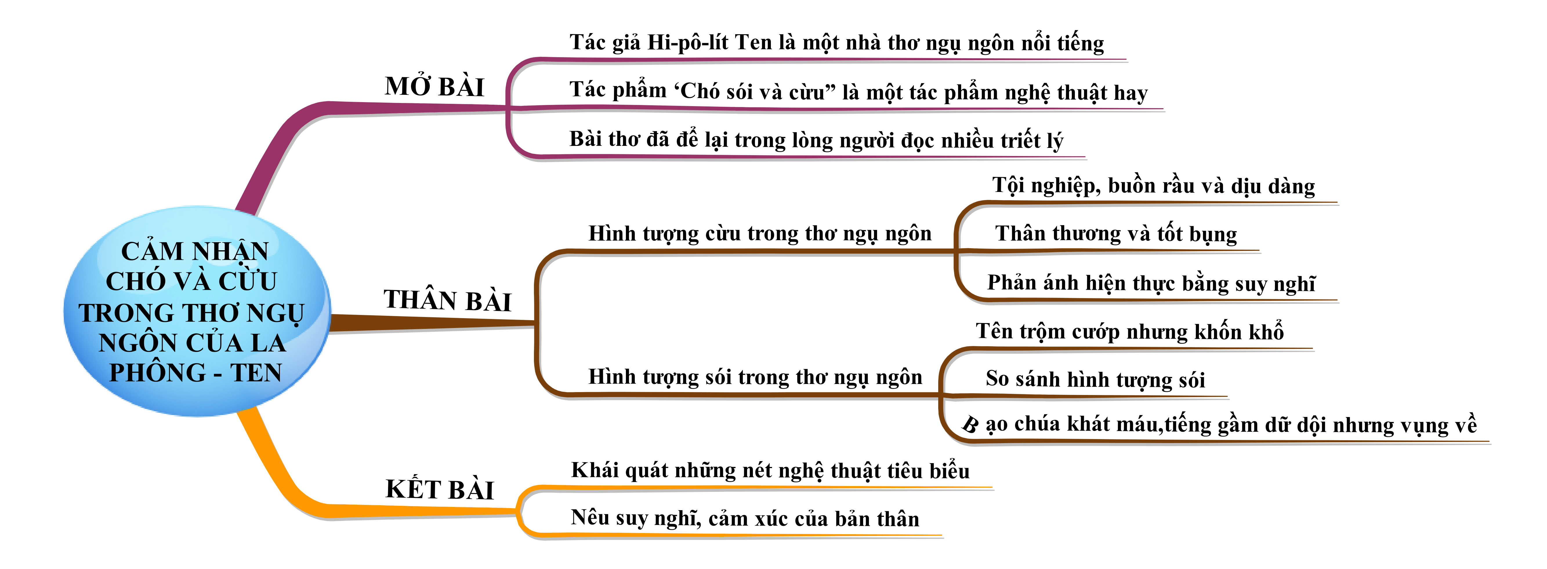 Sơ đồ tư duy Cảm nhận Chó sói và cừu trong thơ ngụ ngôn của La Phông-ten năm 2021