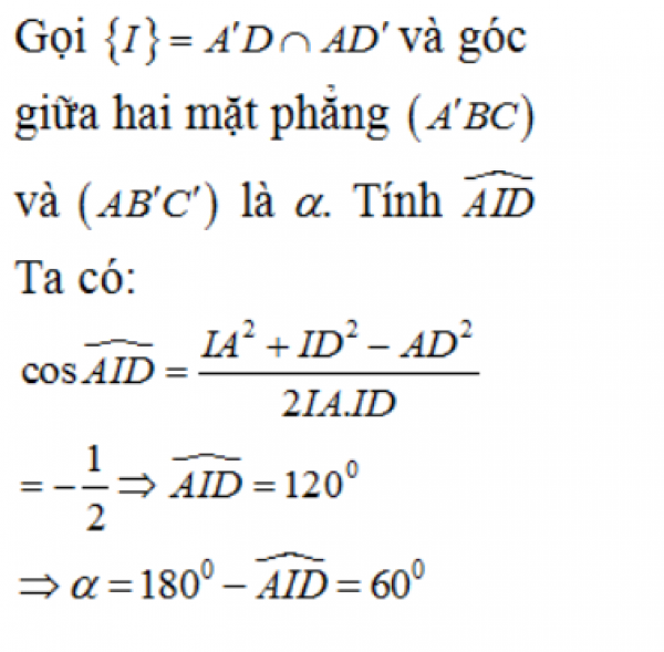 Góc giữa hai mặt phẳng (A′BC) và (AB′C′) bằng