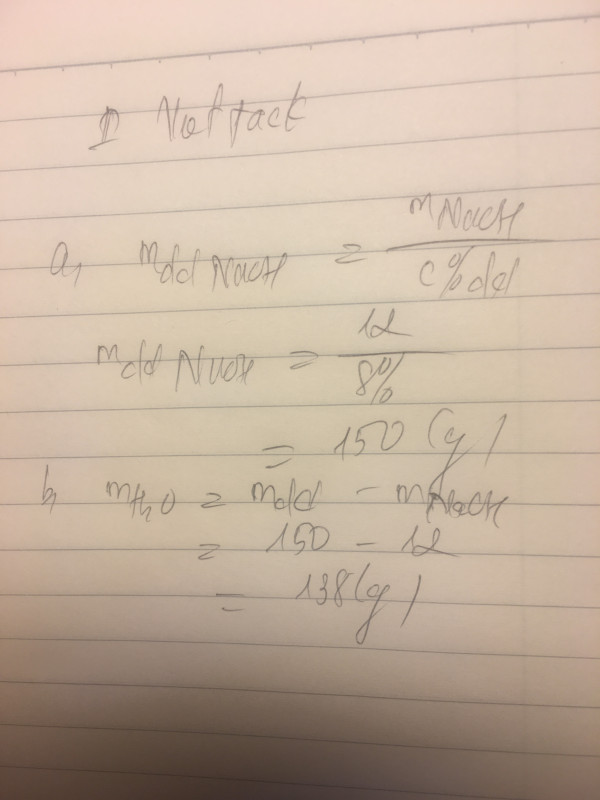 Bài 3.Hòa tan 12g NaOHvào nước thu được dung dịch natri hiđroxitcó nồng độ8%.a. Tính khối lượng dung dịch natri hiđroxit thu được?b. Tính khối lượng nước cần dùng đểpha chế?