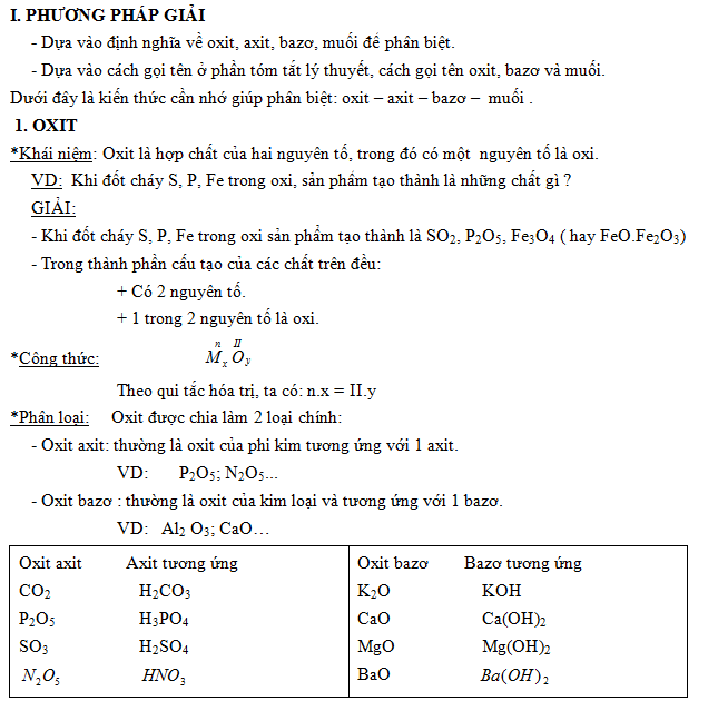 oxit: có kim loại hoặc phi kim kết hợp với O