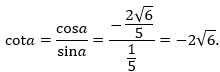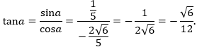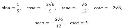 Tính các giá trị lượng giác của góc a, biết sin a= 1/5 và tan a + cot a < 0
