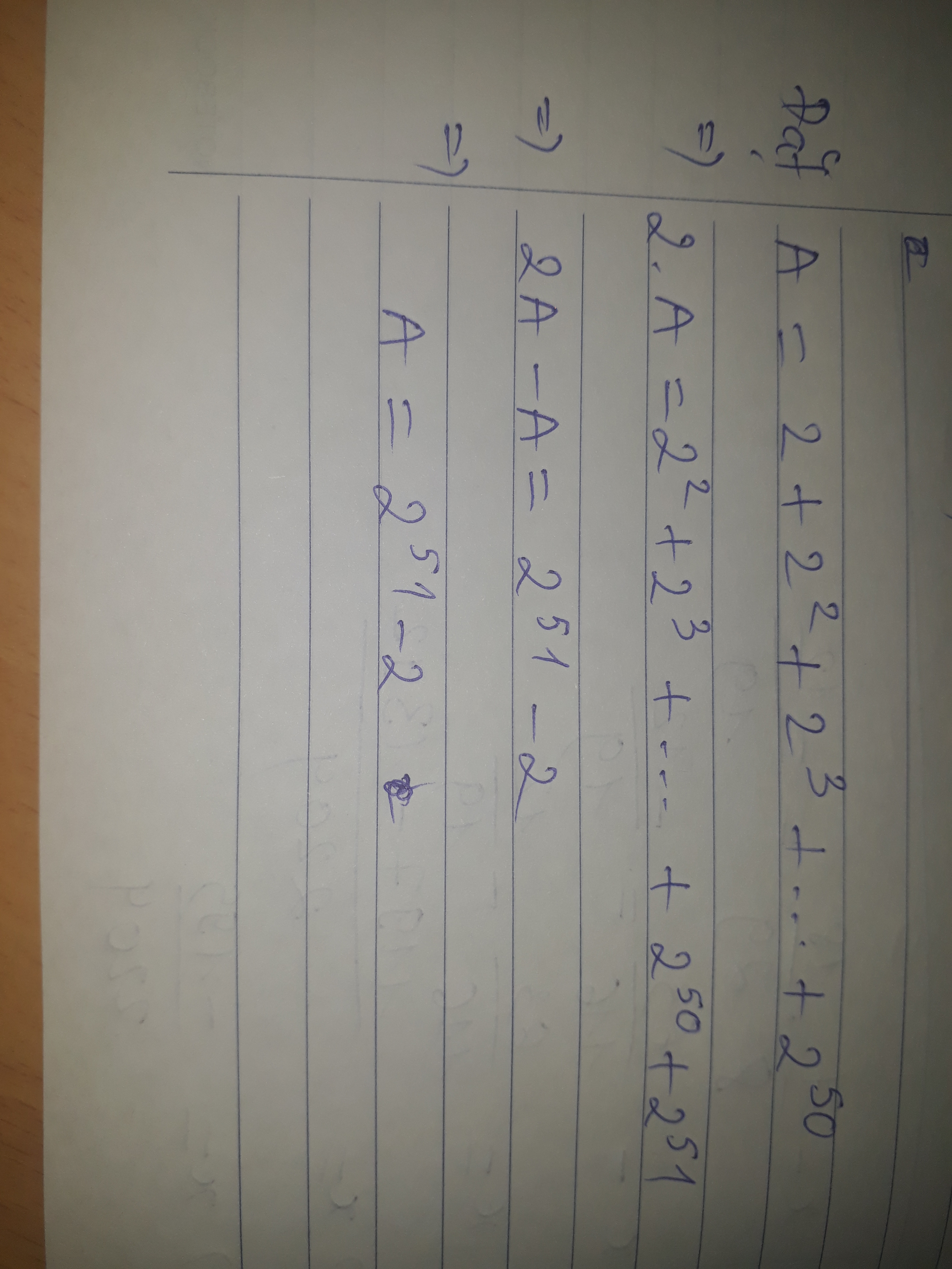 ⇔2A−A=(2^2+2^3+2^4+...+2^51)−(2+2^2+2^3+...+2^50)
