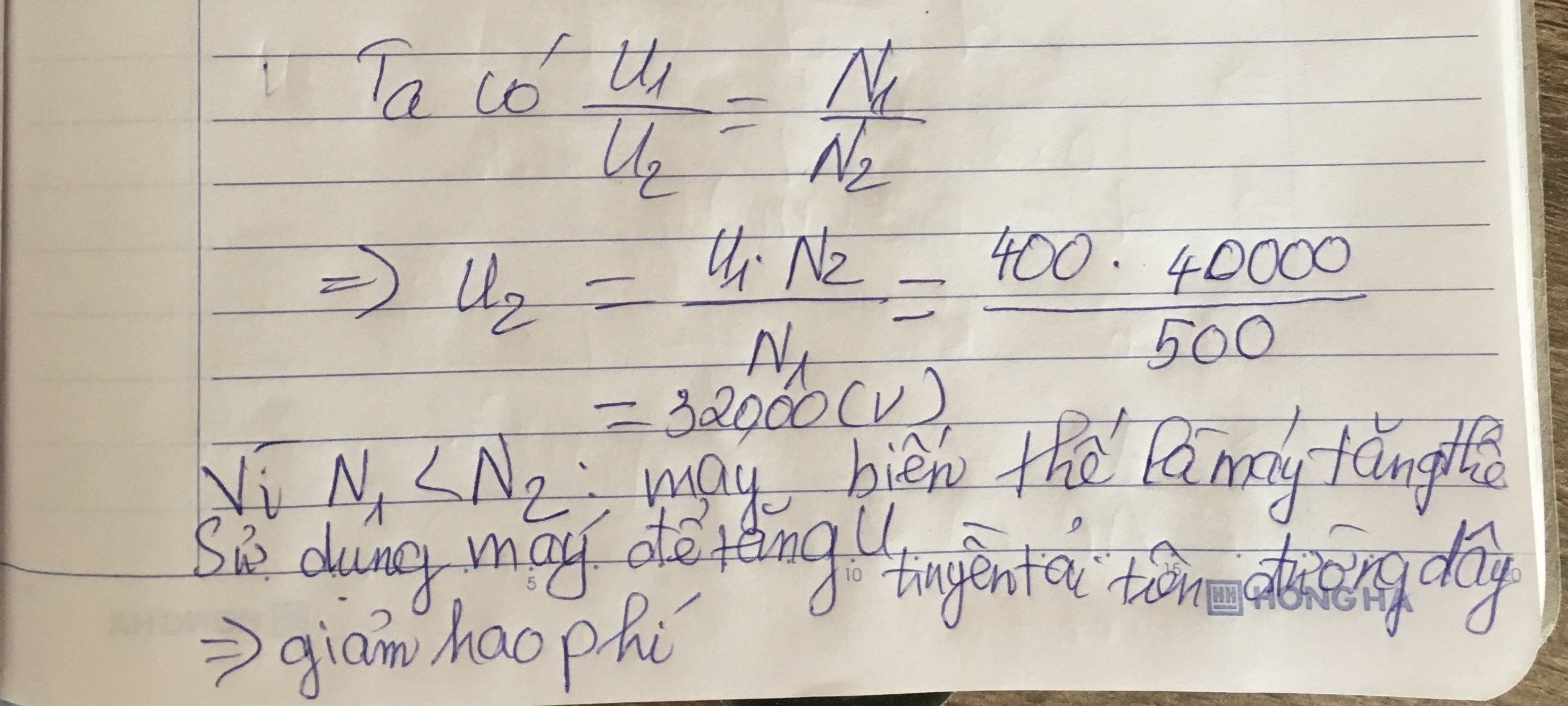 Một máy biến thế Thế có cuộn sơ cấp là 500 vòng vòng cuộn thứ cấp là 40000 vòng đặt vào hai đầu của một máy phát điện tại cuộn sơ cấp một hiệu điện thế 400 V tính hiệu điện thế Thế vào hai đầu cuộn thứ cấp máy biến thế này có tác dụng như thế nào