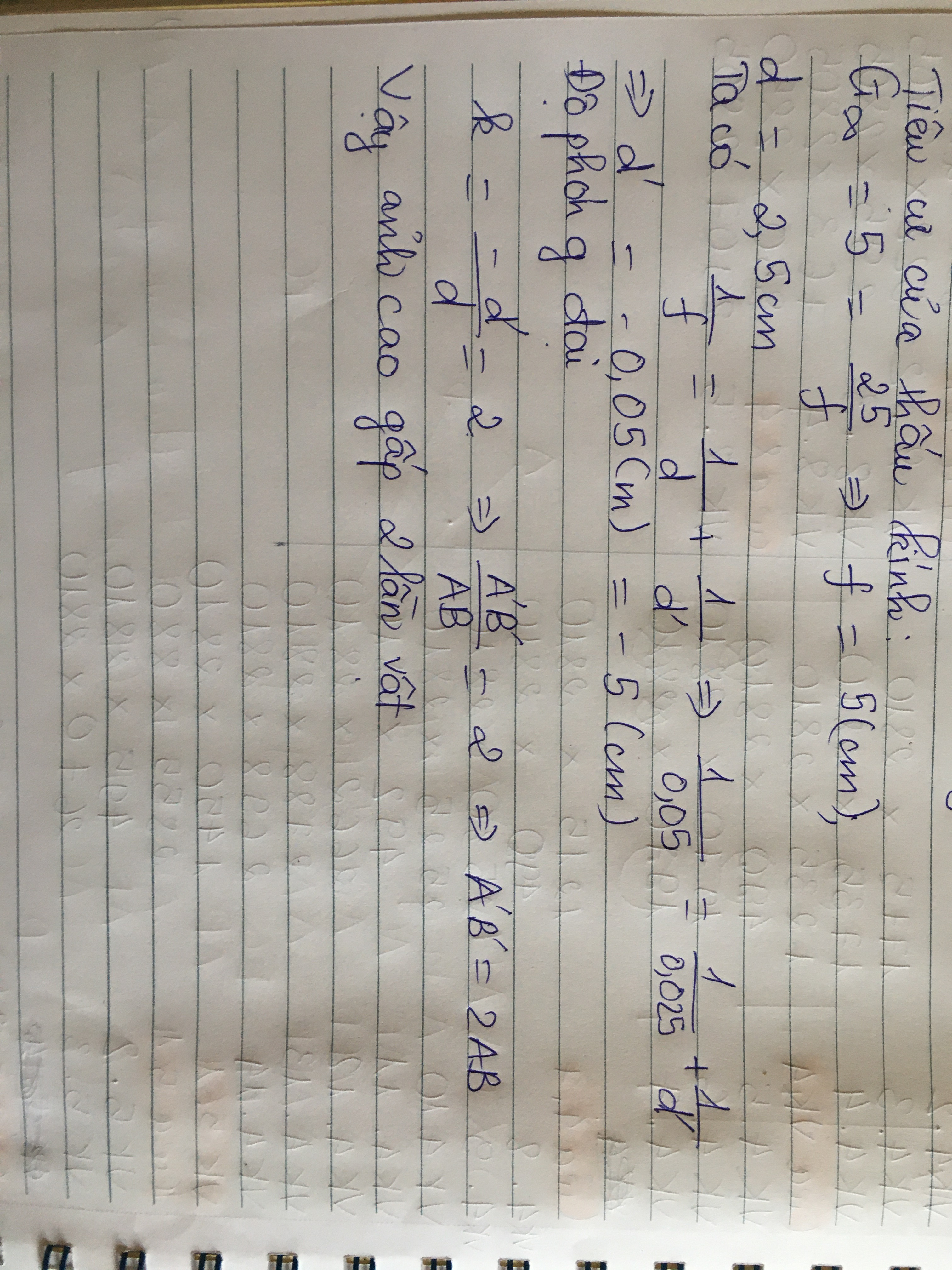 Dùng một kính lúp có số bội giác là 5x để quan sát một vật đặt cách kính lúp 2,5cm. khi đó ảnh tạo bởi kính lúp cao gấp bao nhiêu lần vật?
