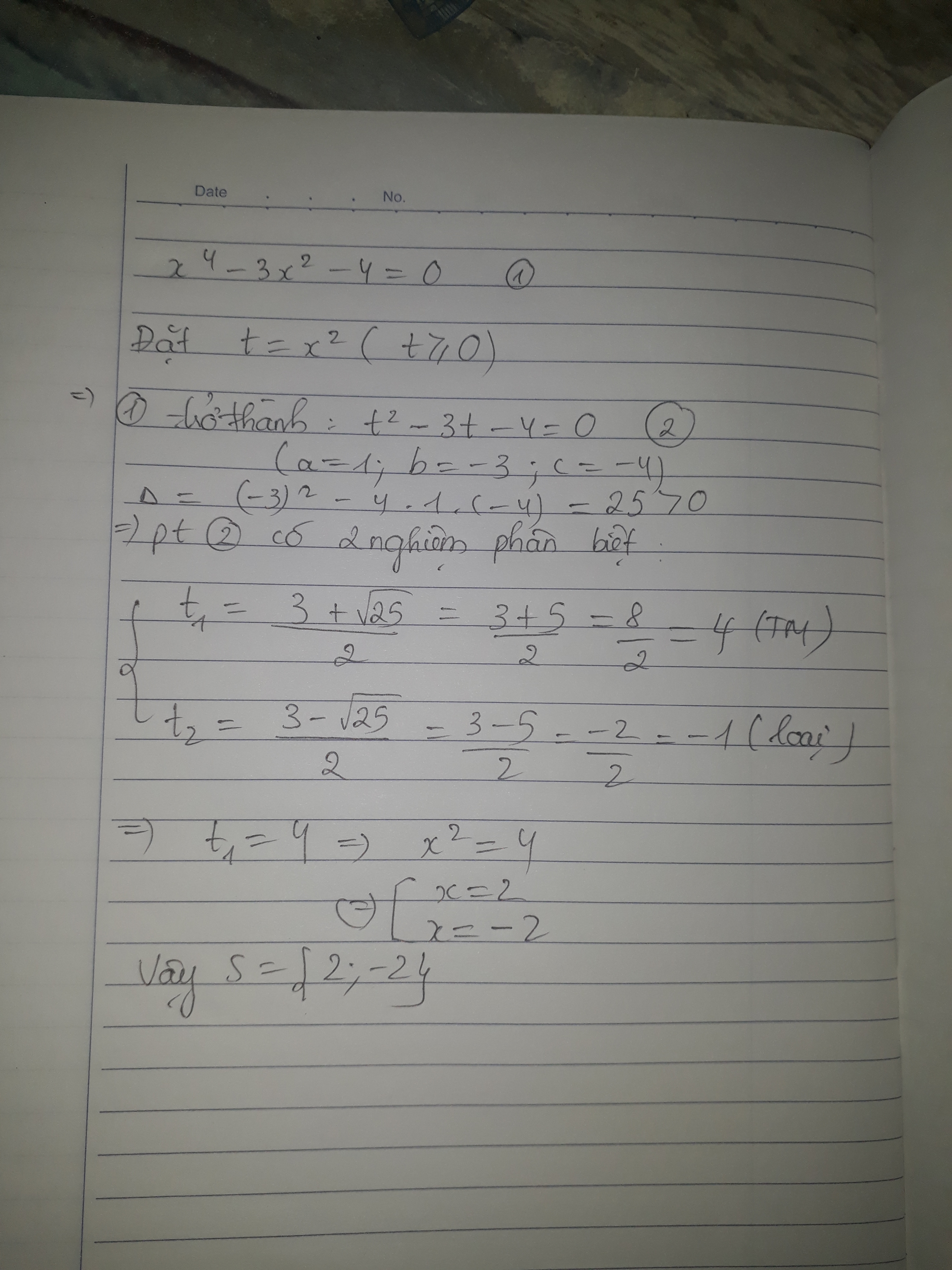 x^4-3x^2-4=0