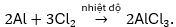 Nhôm phản ứng mạnh với khí clo ở nhiệt độ cao, tạo ra muối nhôm clorua: