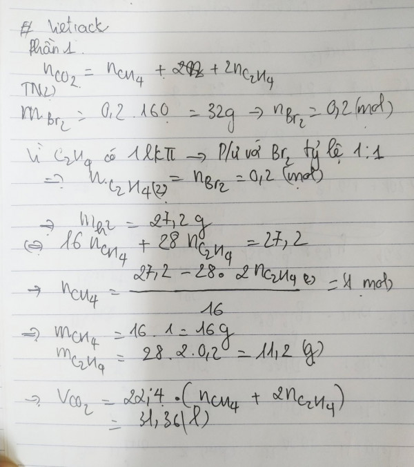 chia 27,2 g hỗn hợp CH4 , CH2 làm 2 phần bằng nhau