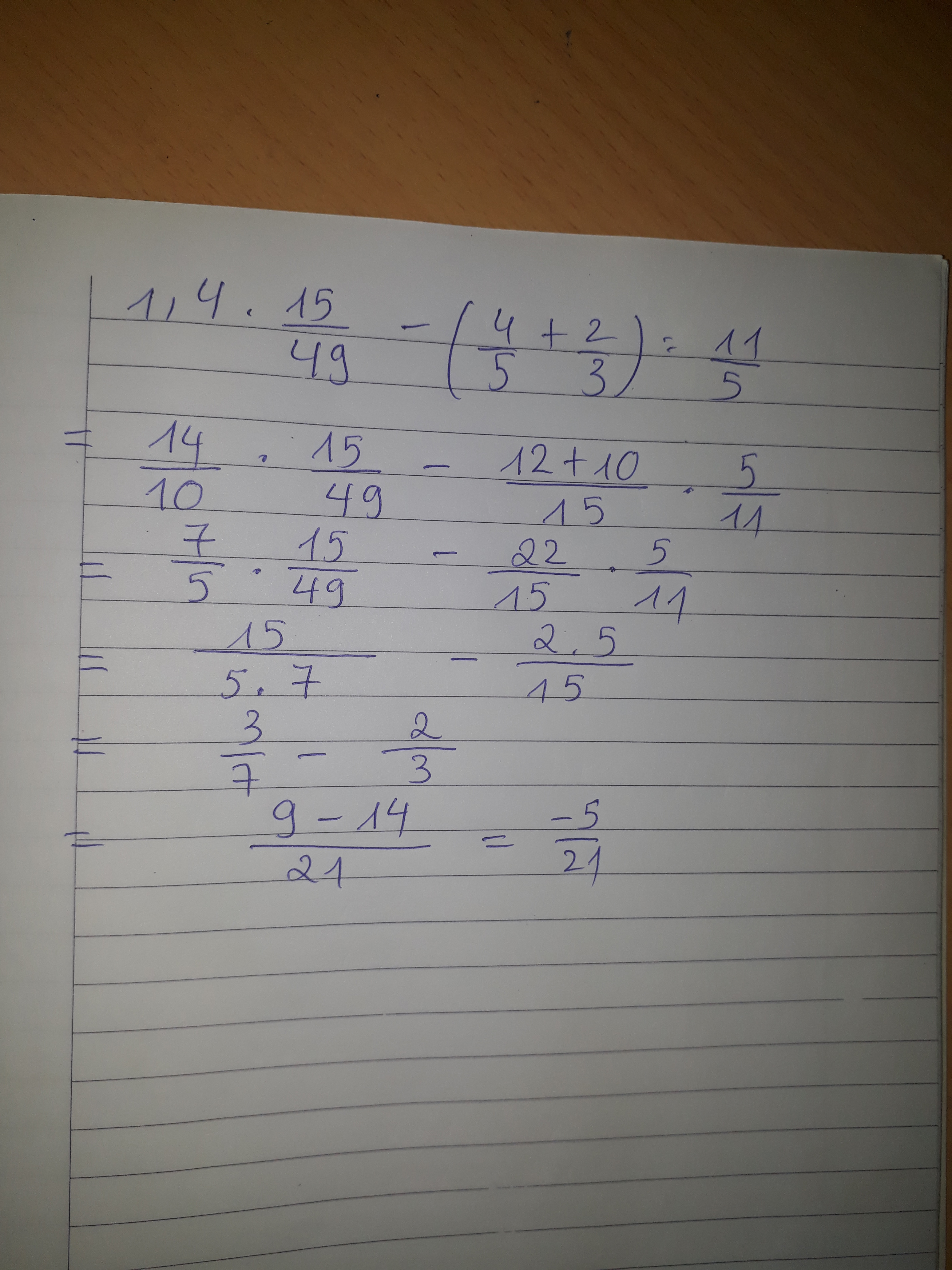= \frac{{ - 5}}{{21}}
