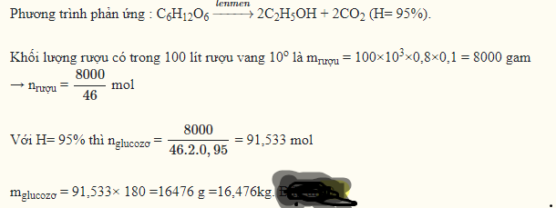 Muốn điều chế 100ml rượu vang 10° thì cần lên men một lượng glucozơ chứ trong nước quả nho là bn?biết răng D=0,8g/ml,hiệu suất phản ứng là 95%