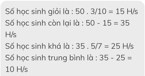 Tỷ số % số hs trung bình so với hs cả lớp là: 10:50x100%=20%