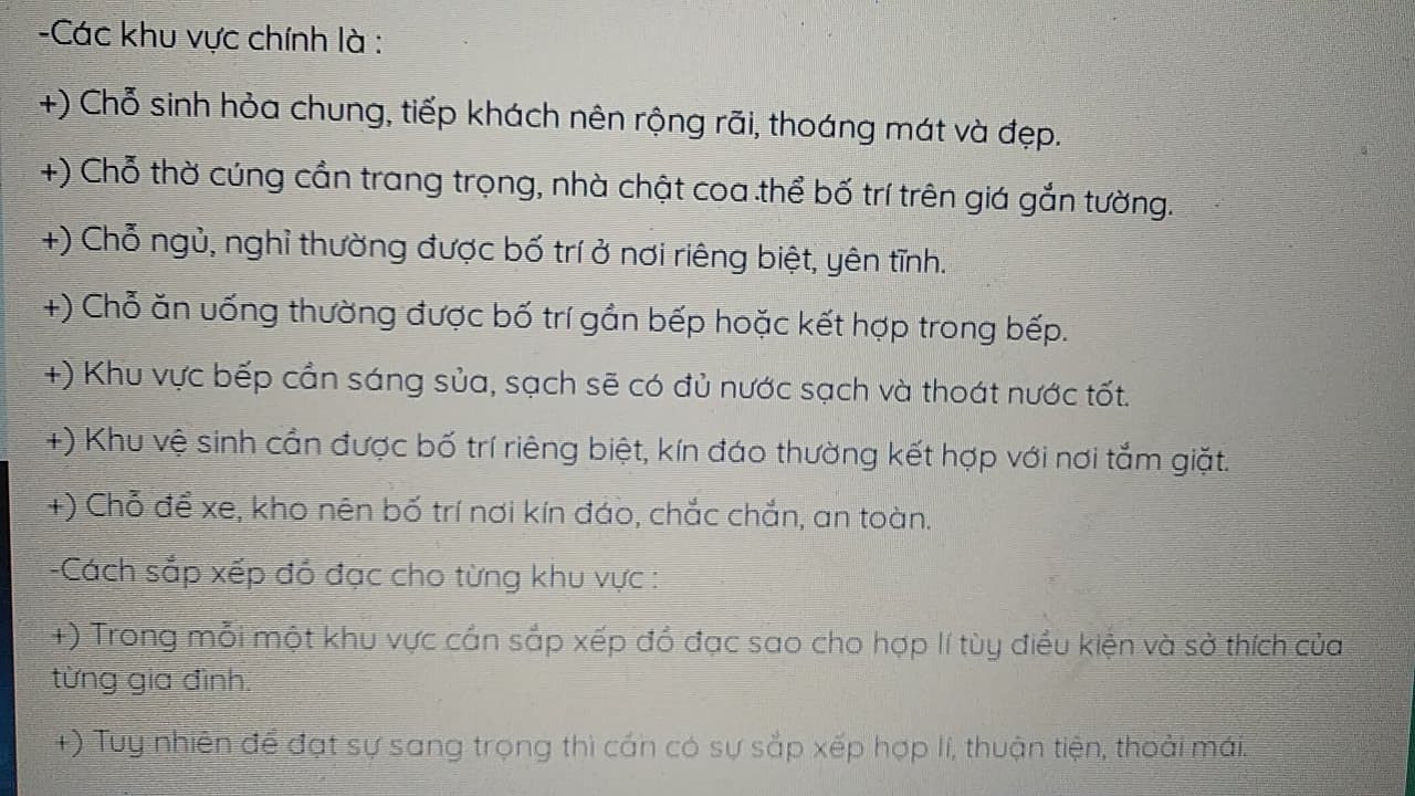 Nêu các bố trí một số khu vực trong nhà ở ?