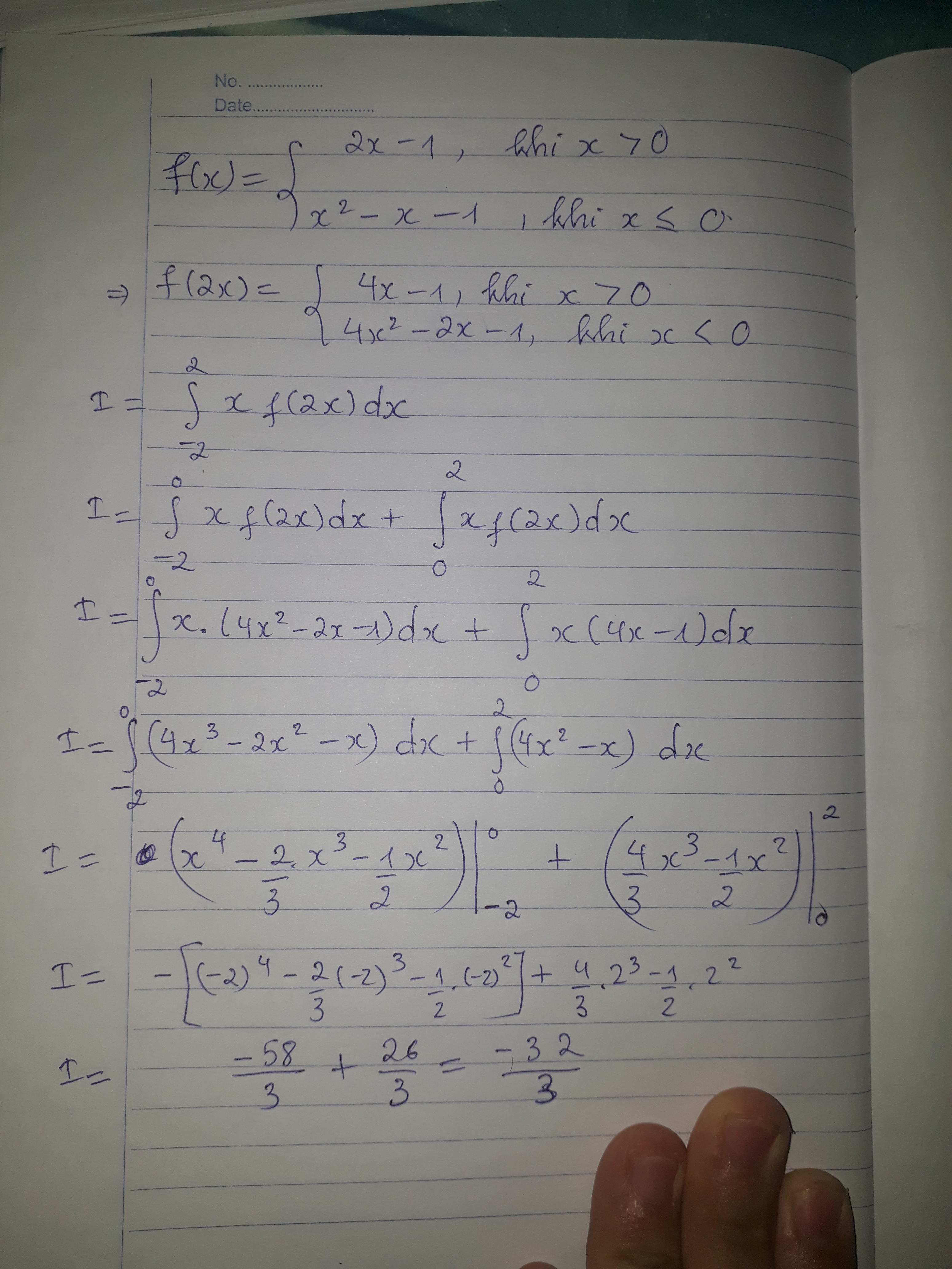 Cho hàm số f(x) = 2x-1 khi x>0, . Tính