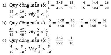 So sánh phần bù của 3/4 và 4/5 là: 1/4>1/5