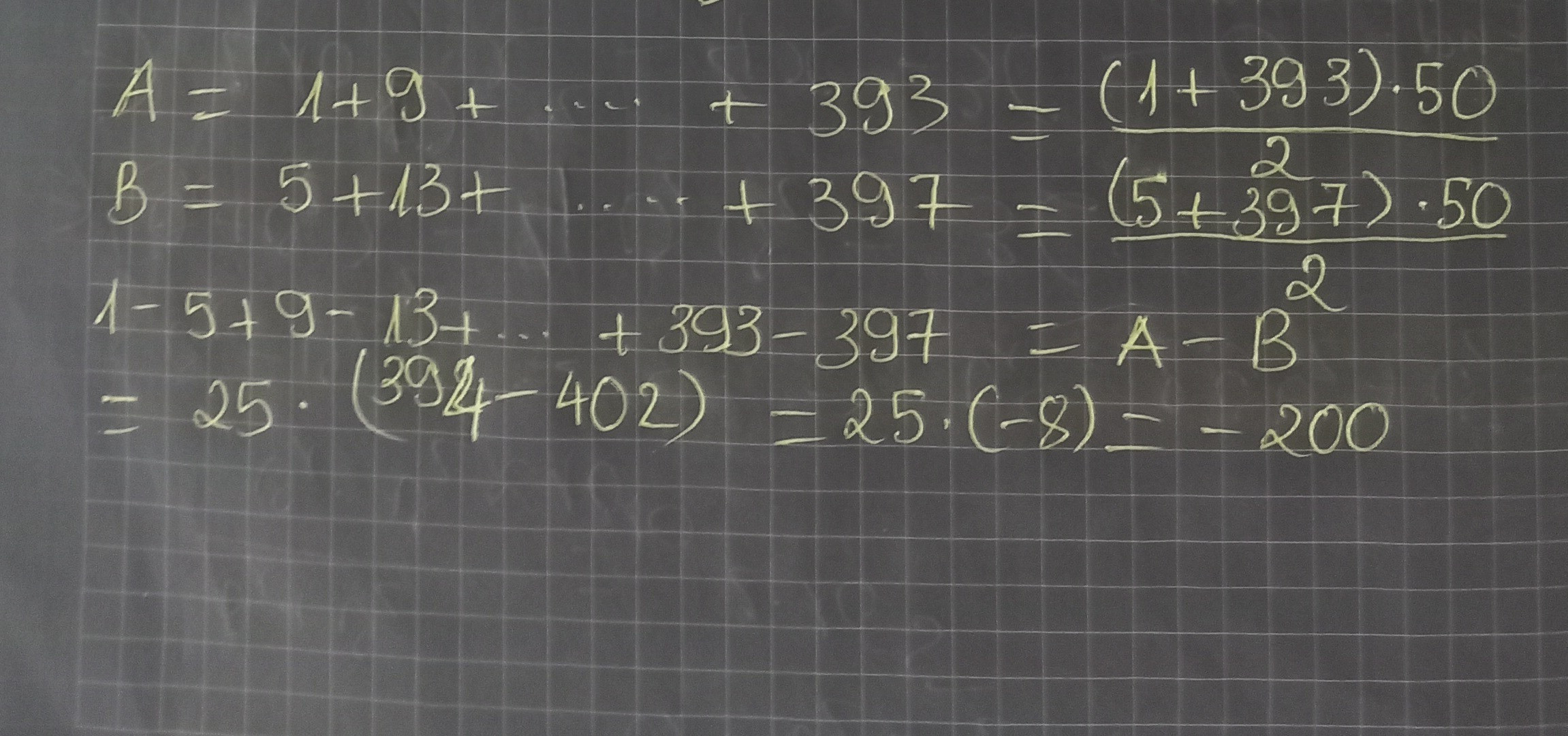 `S` `=` `1` `-` `5` `+` `9` `+` `13` `+` `...` `+` `393` `-` `397`