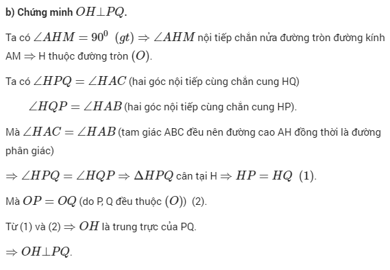 b) Chứng minh rằng tam giác OHQ đều. Từ đó hãy suy ra OH vuông góc với PQ.