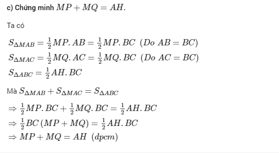 c) Chứng minh rằng MP + MQ = AH.