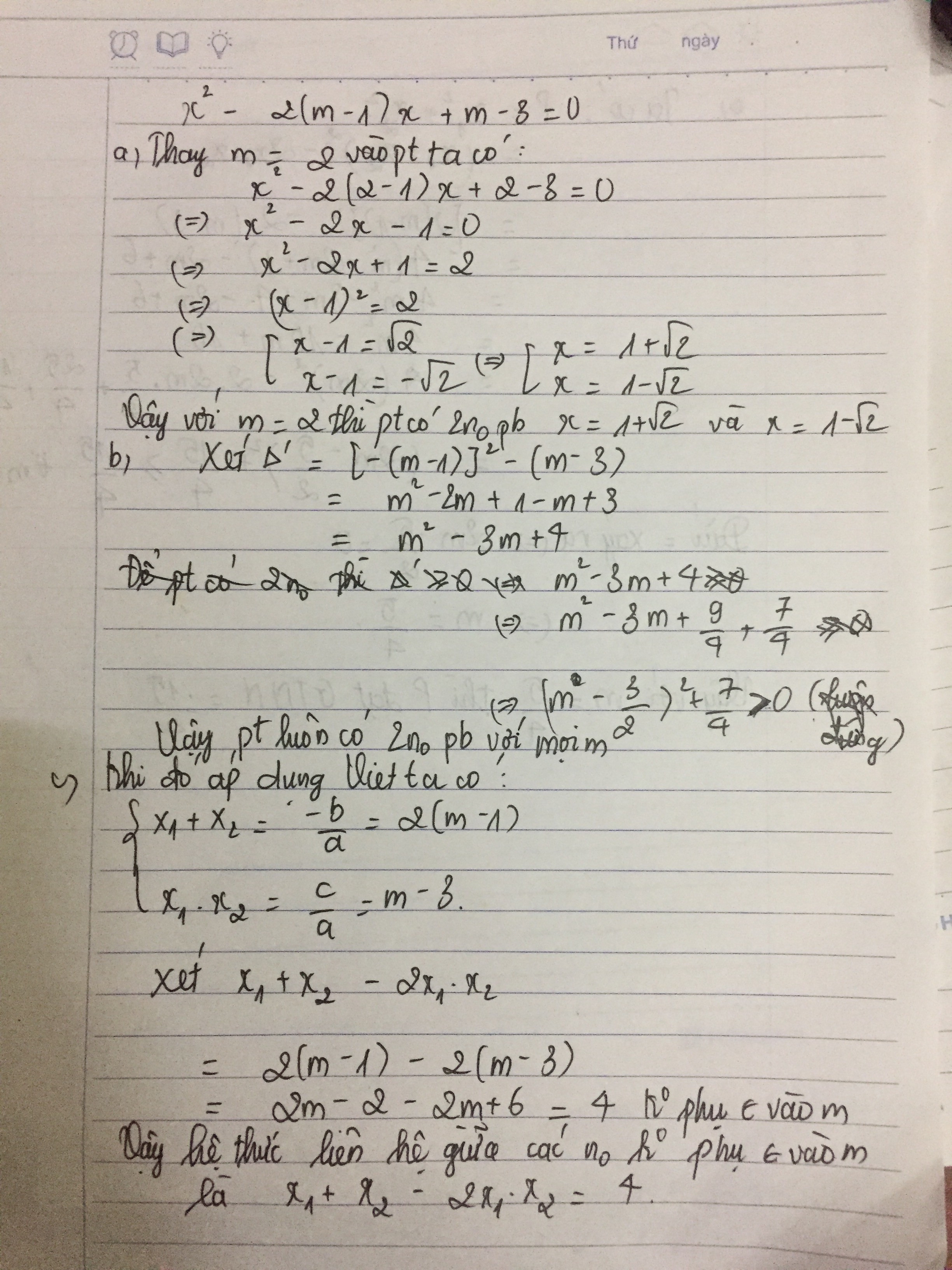 b) chứng minh rằng pt luôn có nghiệm với mọi giá trị của m
