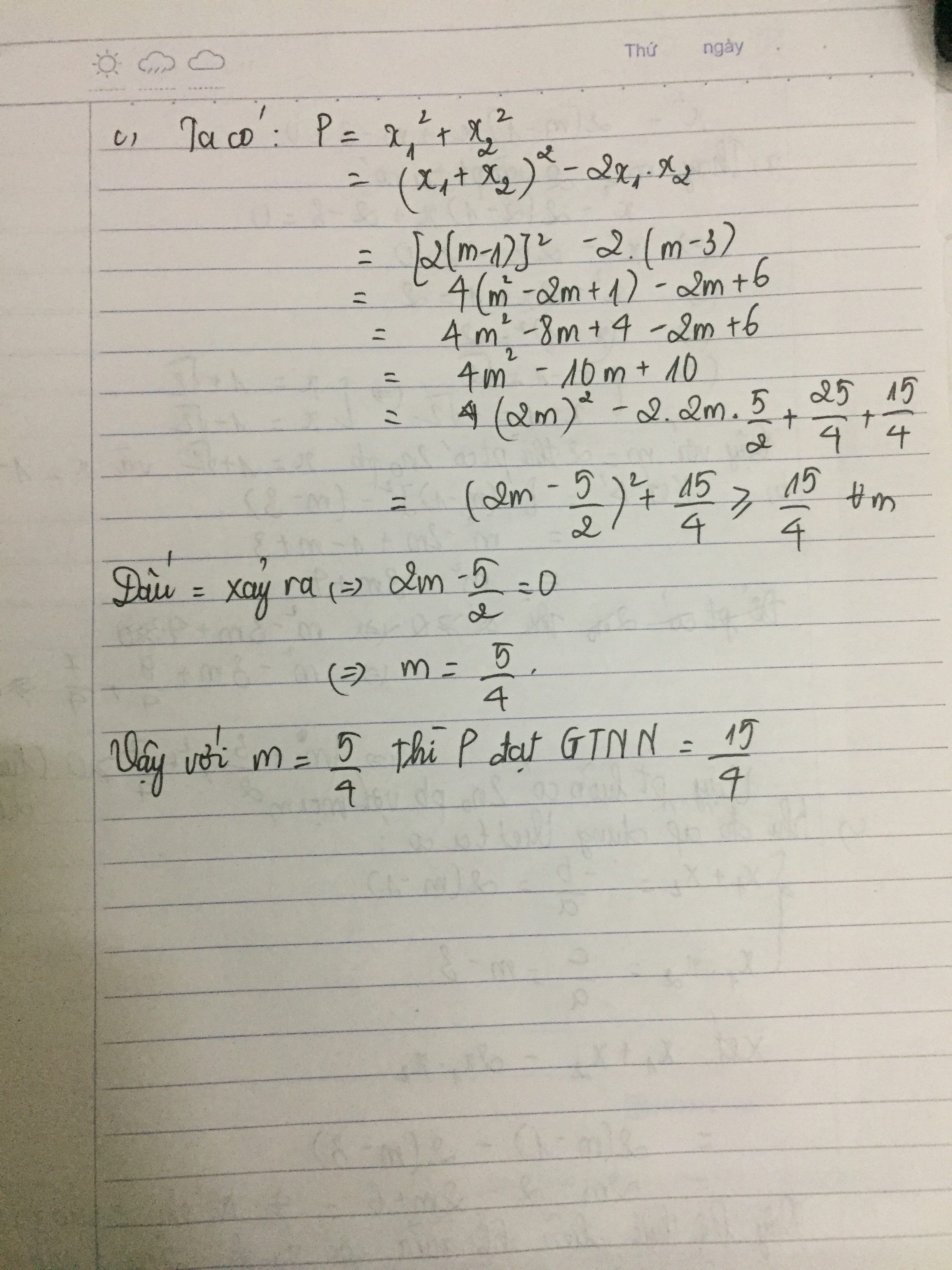 d) gọi x1,x2 là nghiệ của pt. tìm m để x1^2+x2^2 đạt GTNN