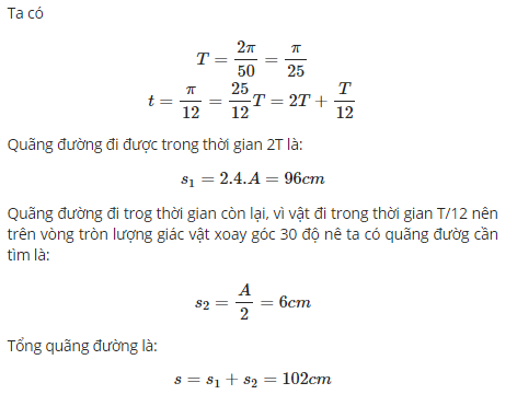 Một con lắc lò xo dao động điều hòa với phương trình : x = 12cos(50t - π/2)cm. Quãng đường vật đi được trong khoảng thời gian t = π/12(s), kể từ thời điểm gốc là : (t = 0)