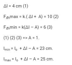 tiểu lần lượt là 10N và 6N. Chiều dài tự nhiên của lò xo là 20cm. Chiều dài cực đại và cực tiểu của