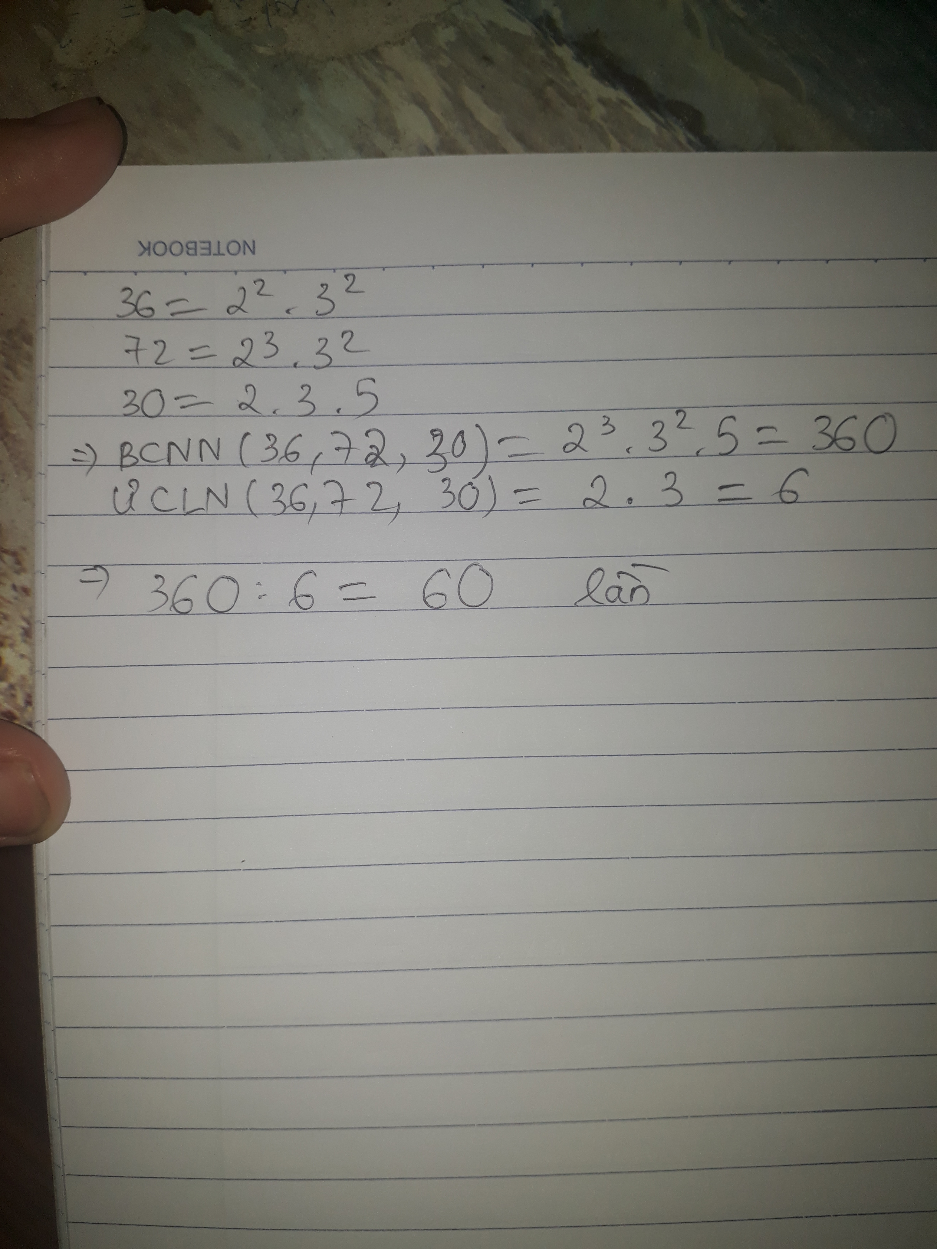 BCNN(36,72,30) gấp mấy lần UCLN(36,72,30)