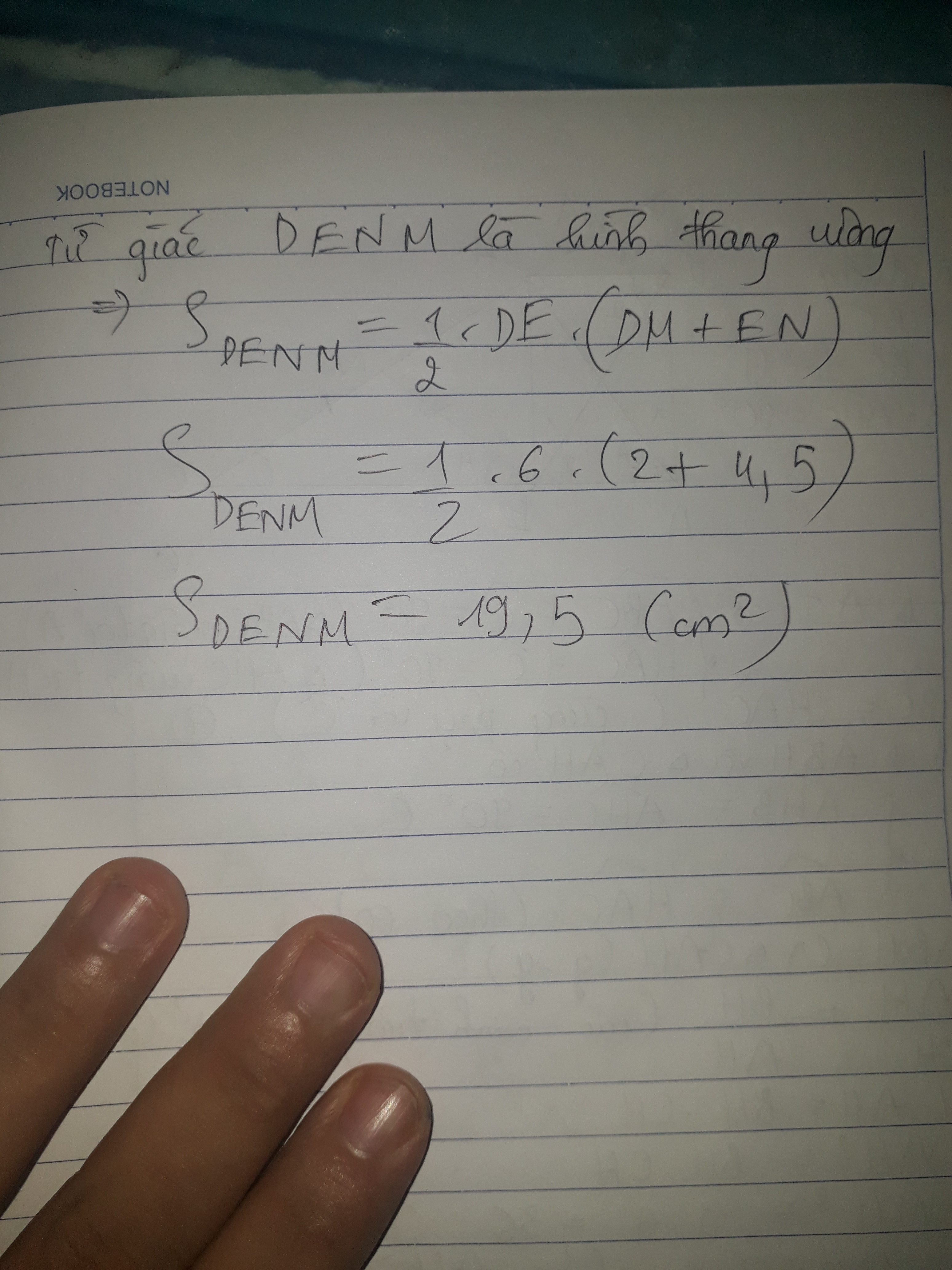 c) Tính diện tích tứ giác DENM