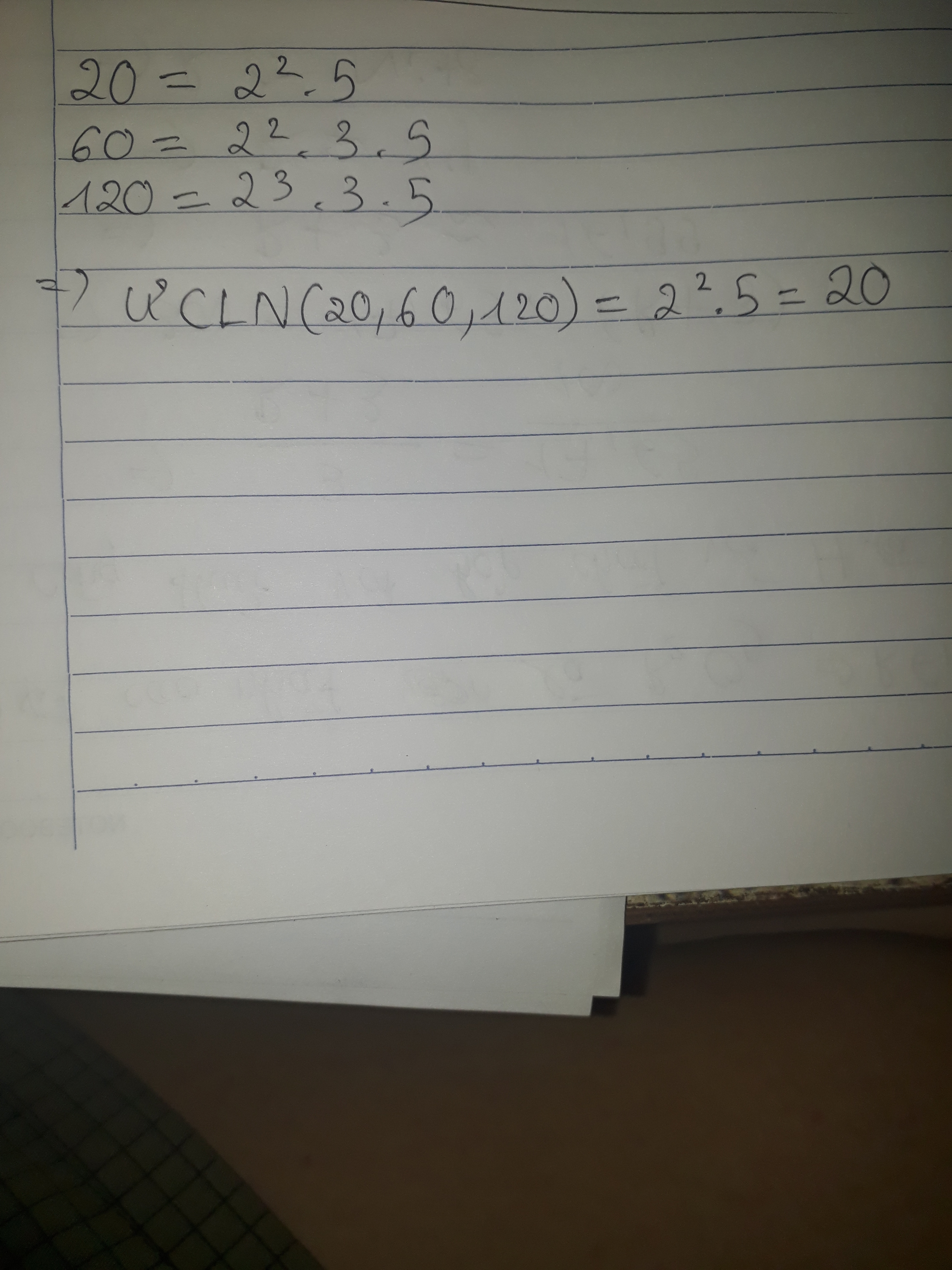 UCLN (20,60,120) = 20 vì 20; 60; 120 đều chia hết cho 20