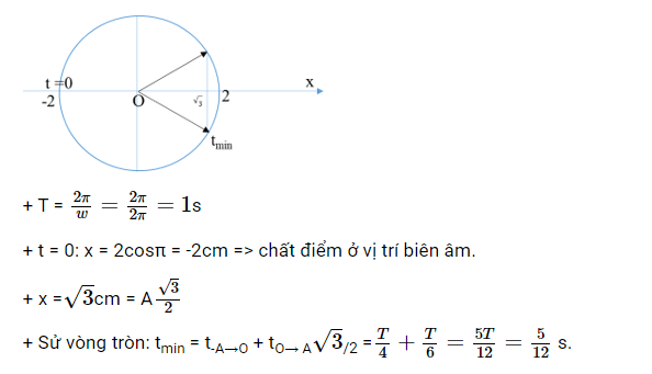 Một chất điểm dao động dọc theo trục Ox .Theo phương trình dao động x=2cos(2πt+π)(cm). Thời gian ngắn nhất vật đi từ lúc bắt đầu dao động đến lúc vật có li độ x =√3 cm là?
