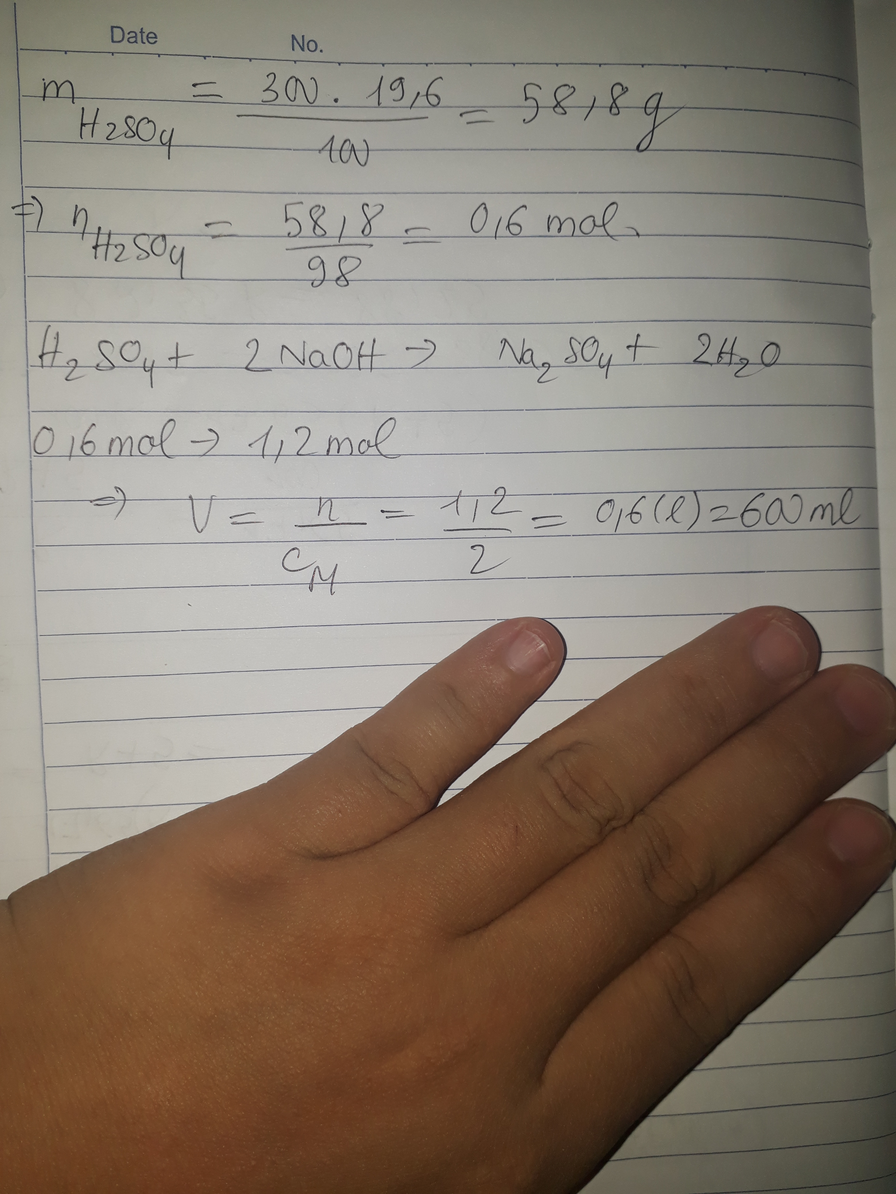 => nH2SO4 = 58,8/98 = 0,6 mol