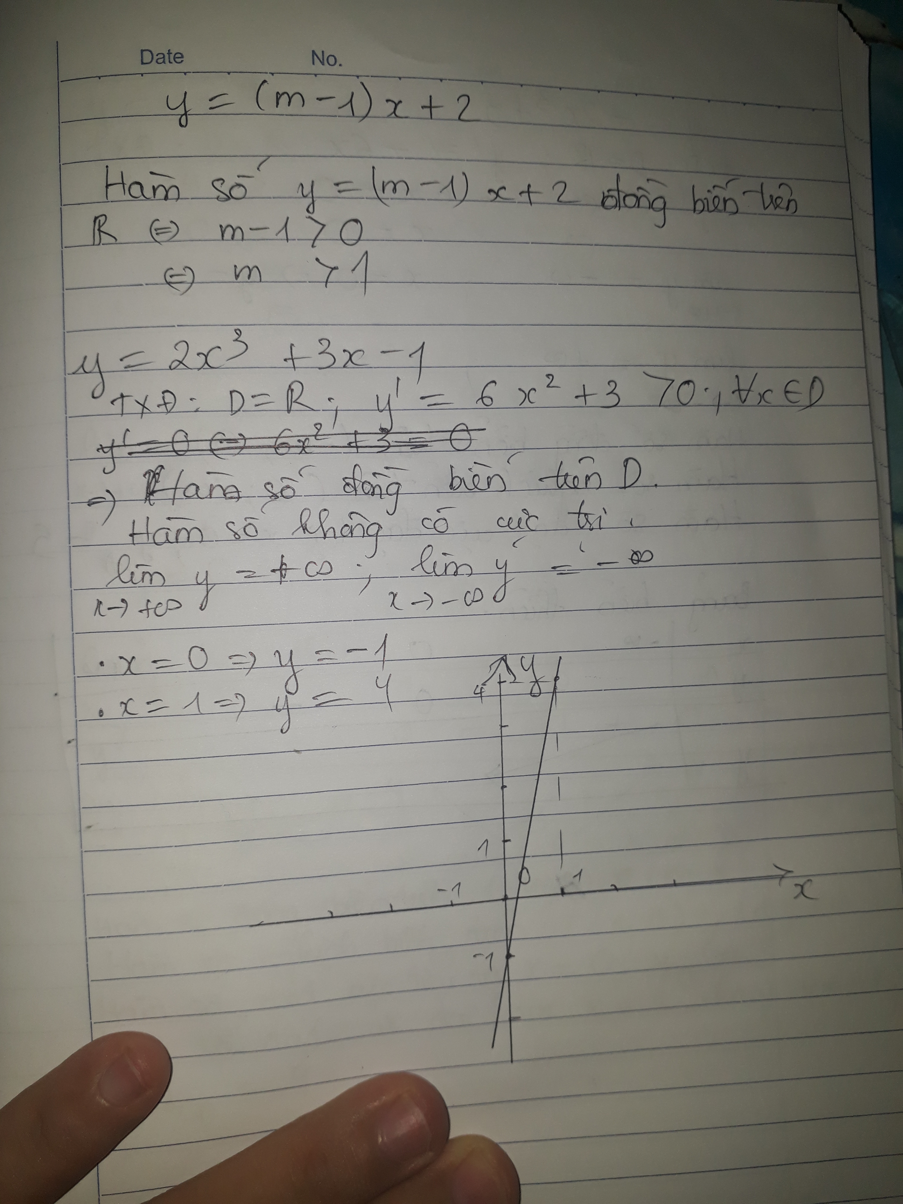 Khảo sát sự biến thiên và vẽ đồ thị hàm số y=2x^3 +3x-1