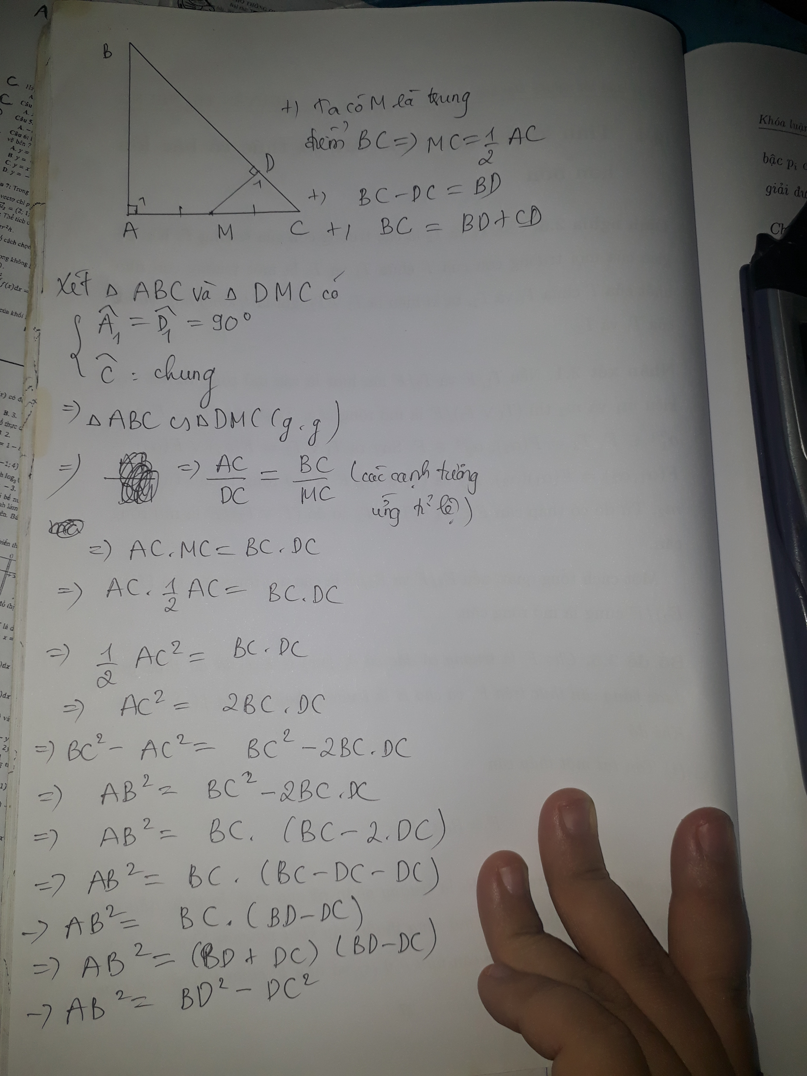 Cho tam giác ABC vuông tại A, M là trung điểm của AC. Vẽ MD vuông góc với BC . CM : AB^2 = BD^2 - CD^2