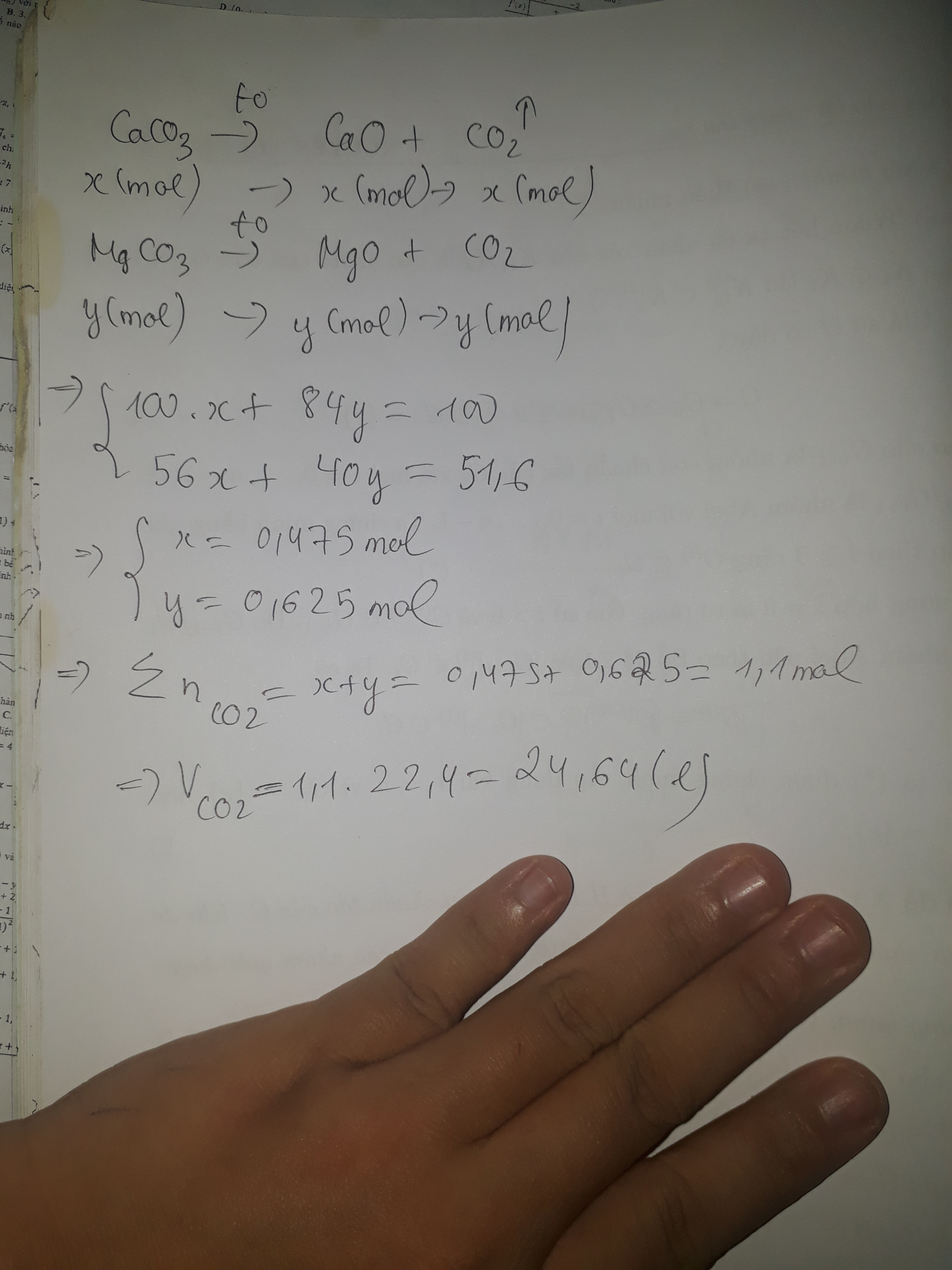 Có: nCO2=nCaCO3+nMgCO3=0,475+0,625=1,1 mol