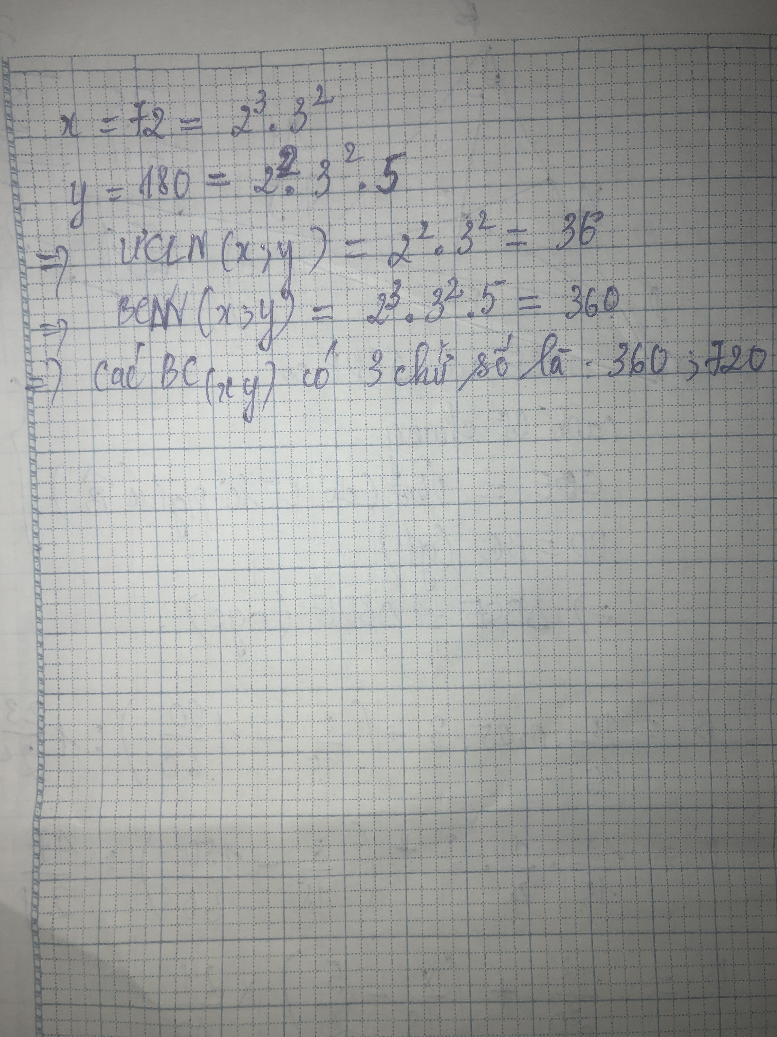 Cho 2 số x=72;y=180.