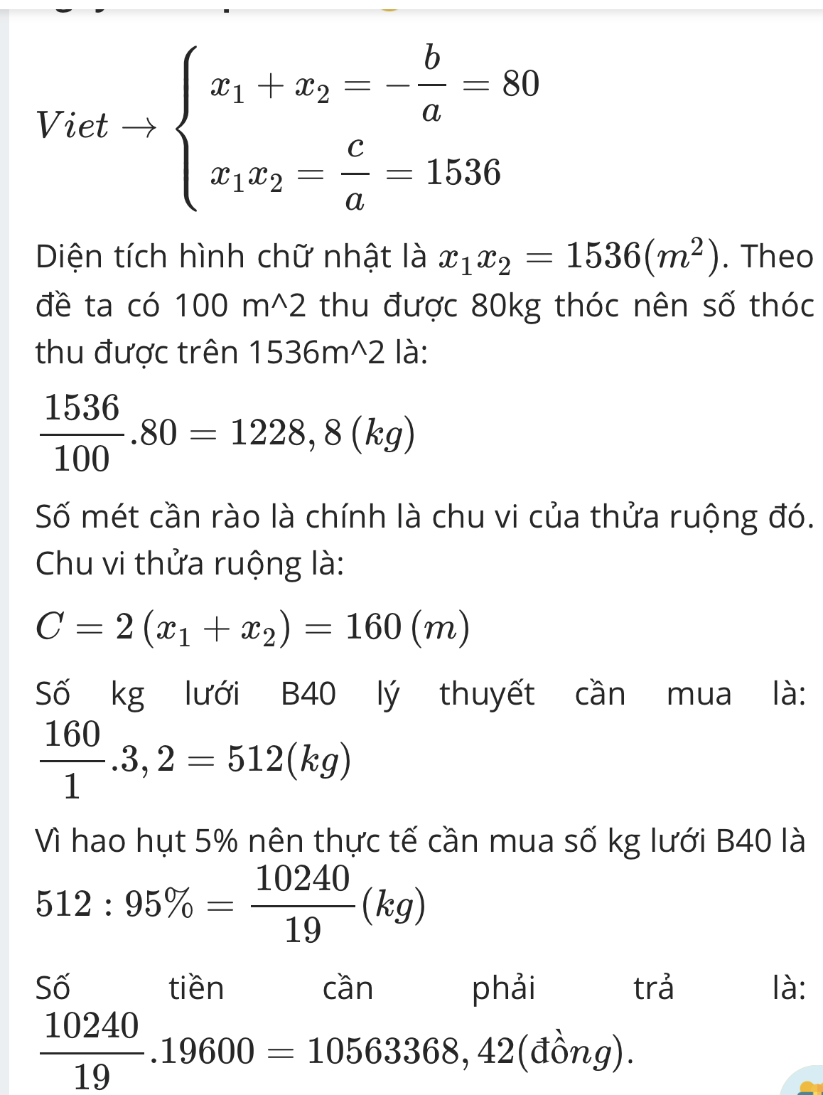 b) Anh An muốn rào thửa ruộng bằng lưới kẽm B40(loại 3,2 kg/m).Hỏi số tiền mua lưới