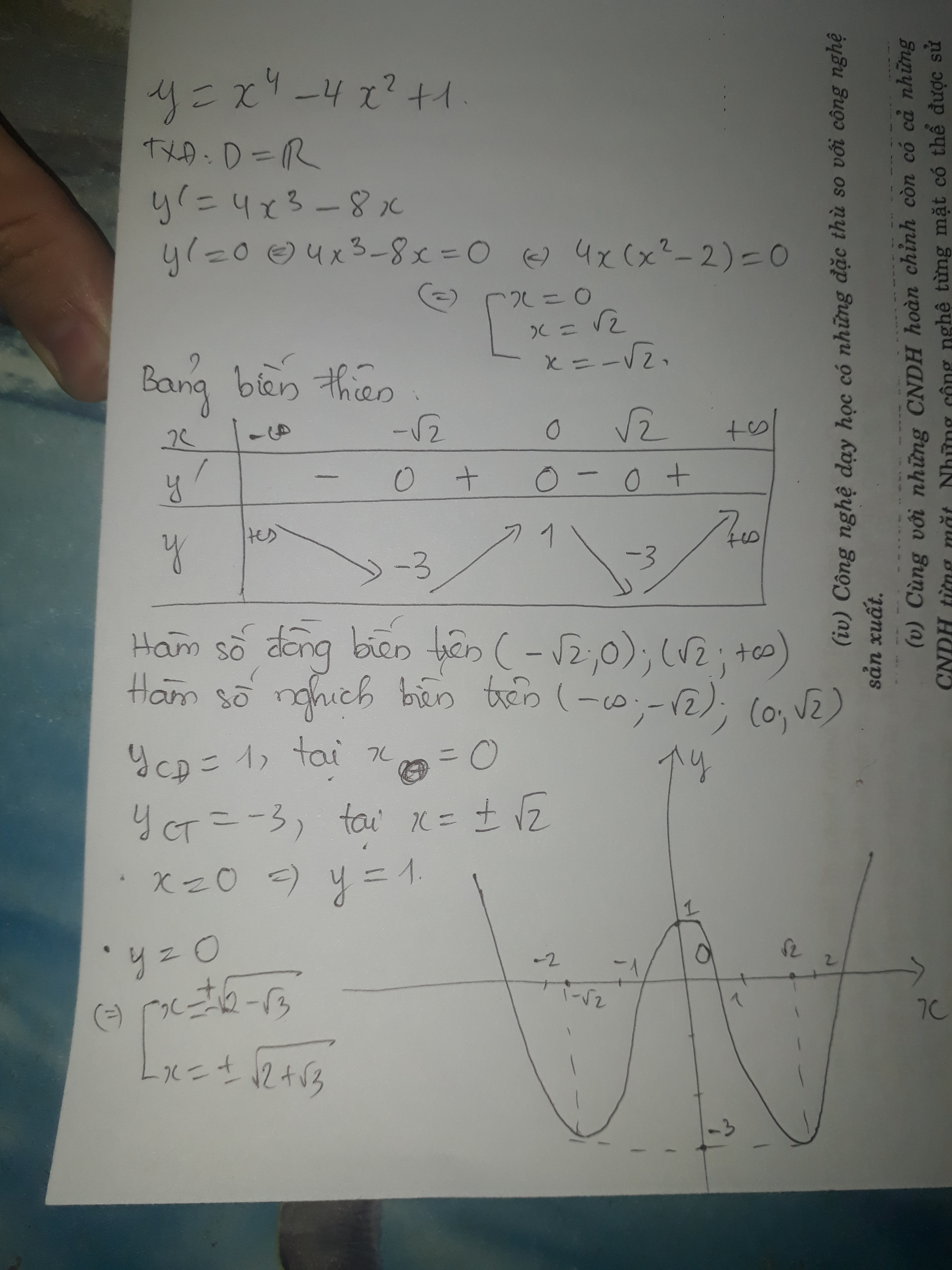 Cho hàm số: y bằng x mũ 4 trừ 4x bình phương cộng 1 (C)