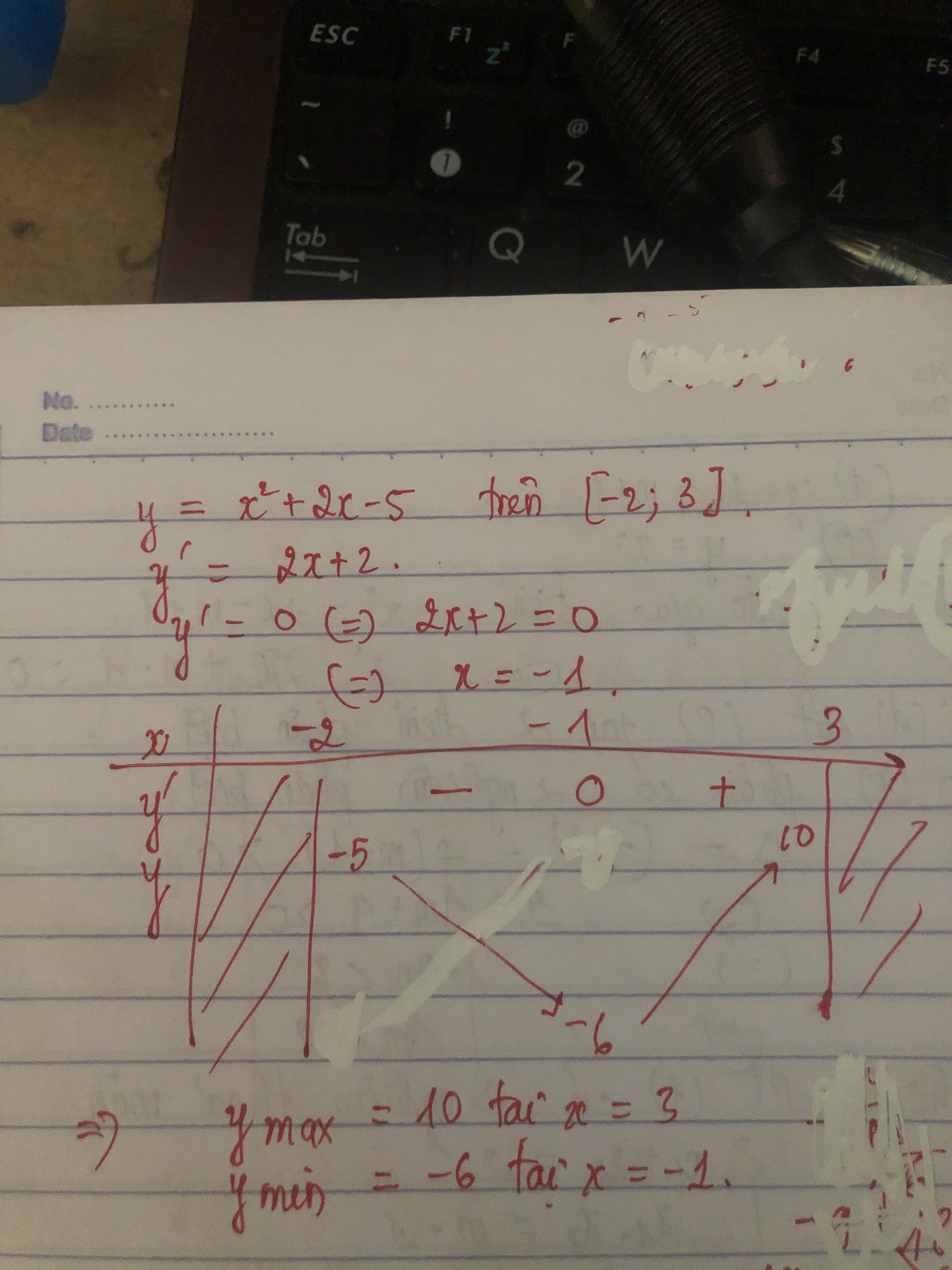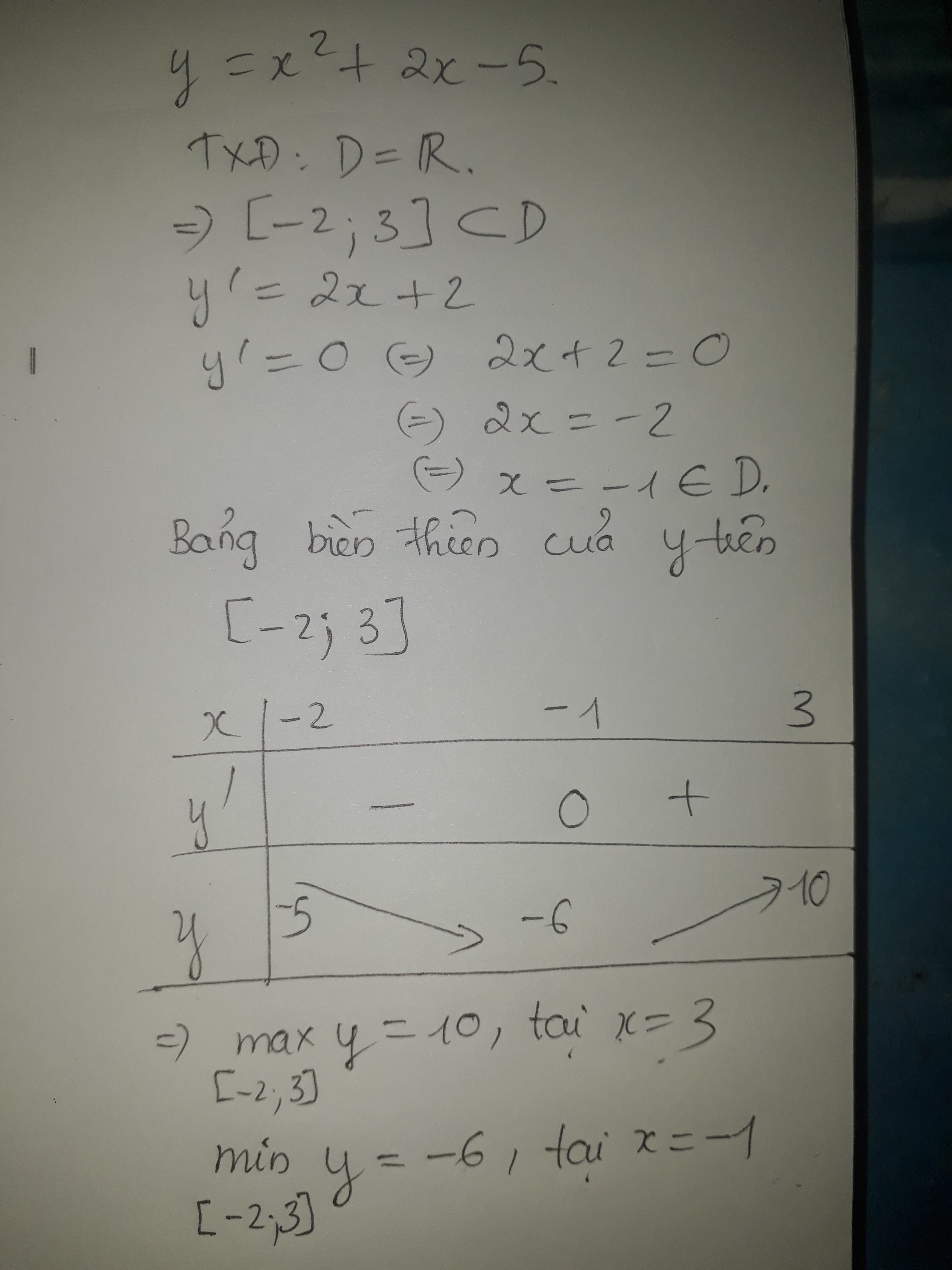 Tìm min,max x^2+2x -5 trên [-2;3]