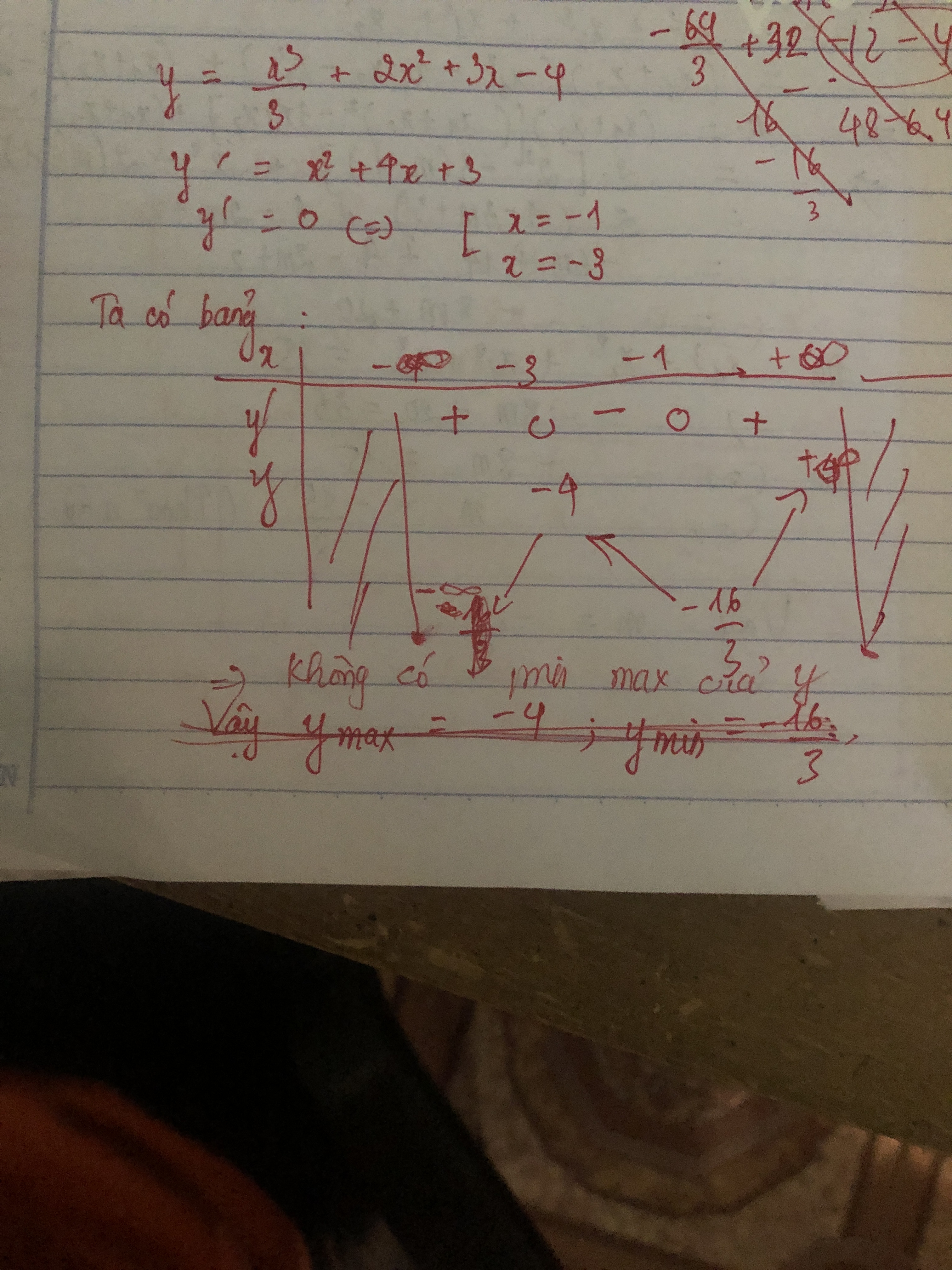 y=x33+2x2+3x−4y′=x2+4x+3y′=0⇔x2+4x+3=0⇔[x=−3x=−1y=x33+2x2+3x−4y′=x2+4x+3y′=0⇔x2+4x+3=0⇔[x=−3x=−1