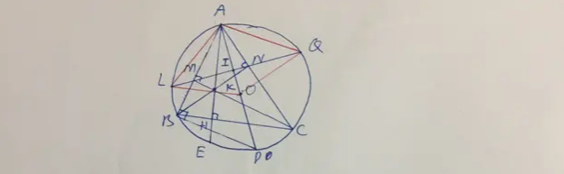 Cho tam giác ABC có ba góc nhọn (AB<AC) nội tiếp đường tròn (O). Đường cao BN và CM cắt nhau tại K. Đường thẳng đi qua M và N cắt đường tròn (O) tại L và Q (L nằm trên cung AB nhỏ)