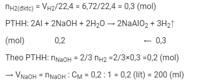 Hòa tan hết M Gam Nhôm và dd NaOH 1M thu dc 6,72l khí (dktc), tín V NaOH cần dùng