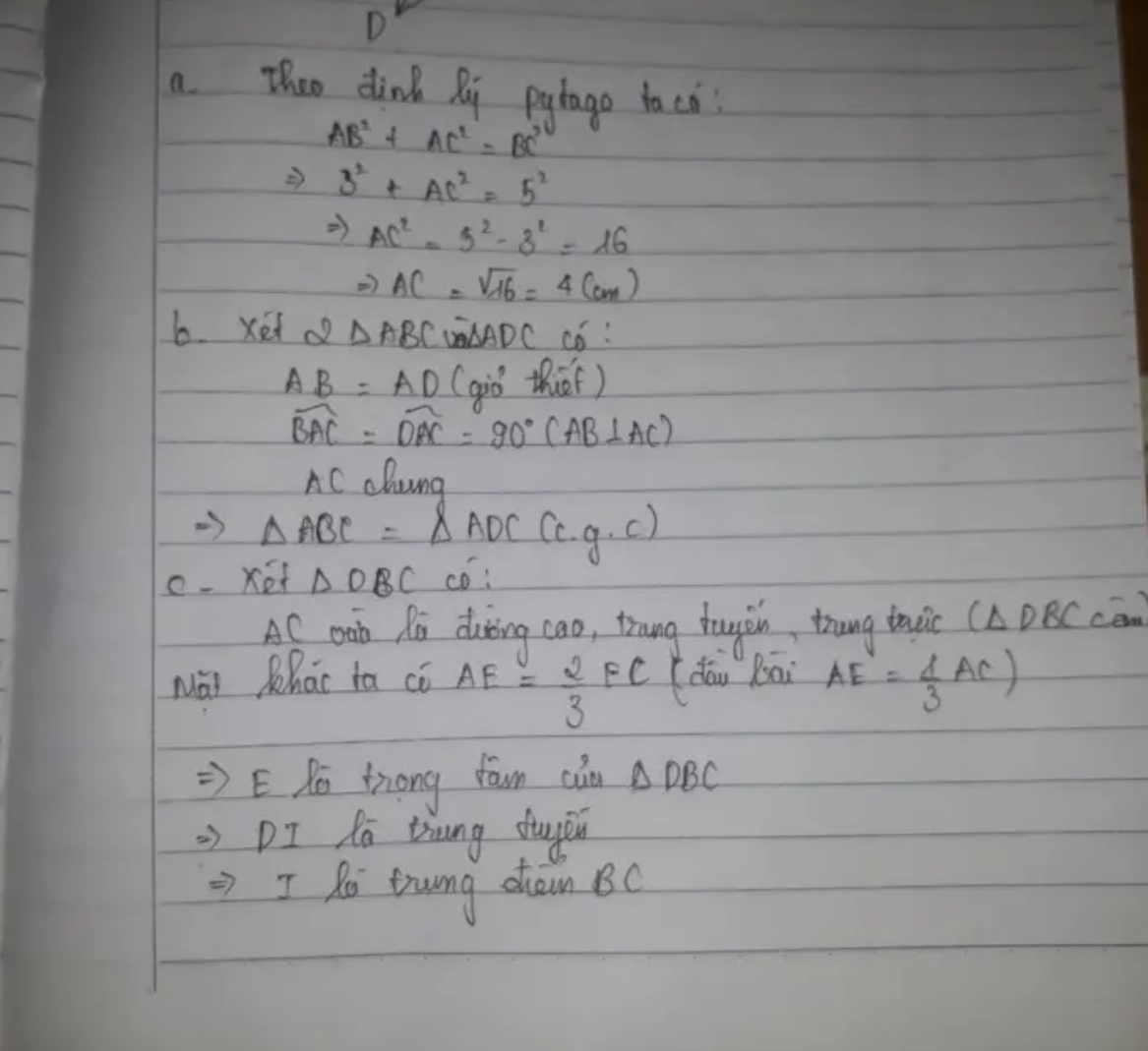 c, Trên AC lấy điểm E sao cho AE= 1/3 AC. Chứng minh DE đi qua trung điểm I của BC